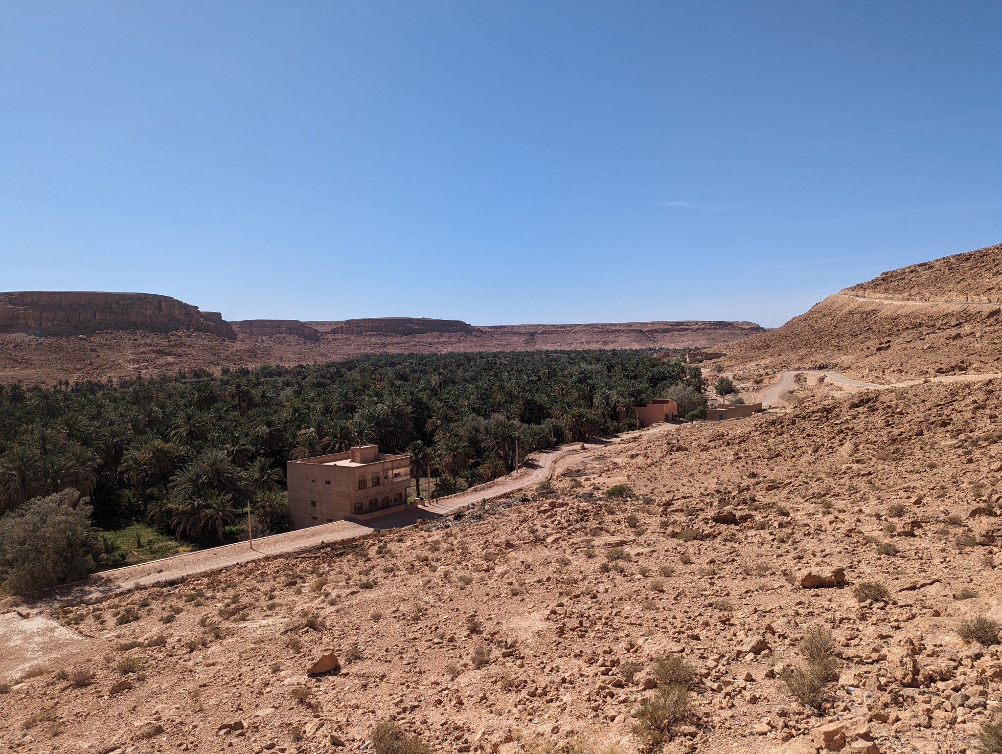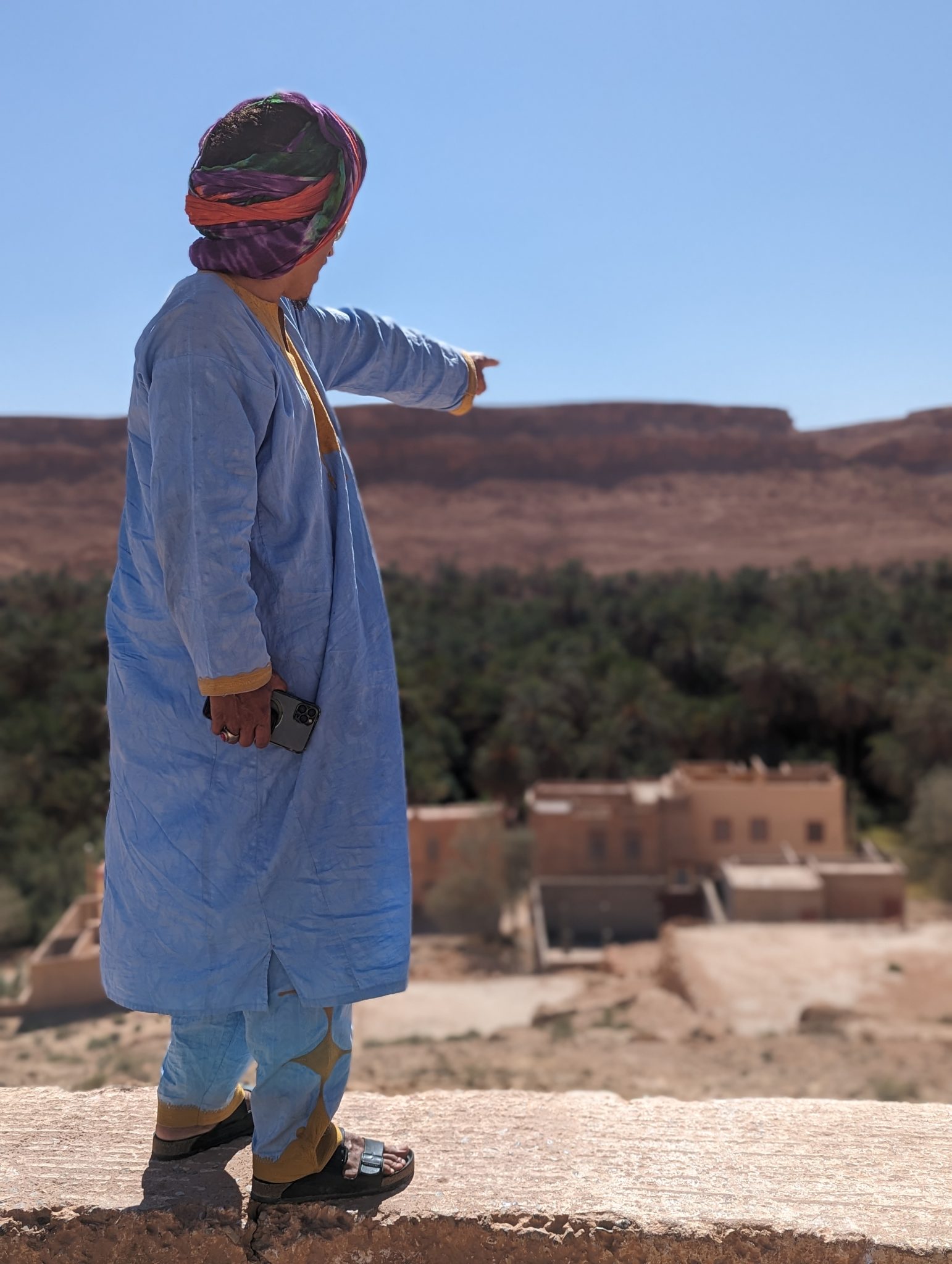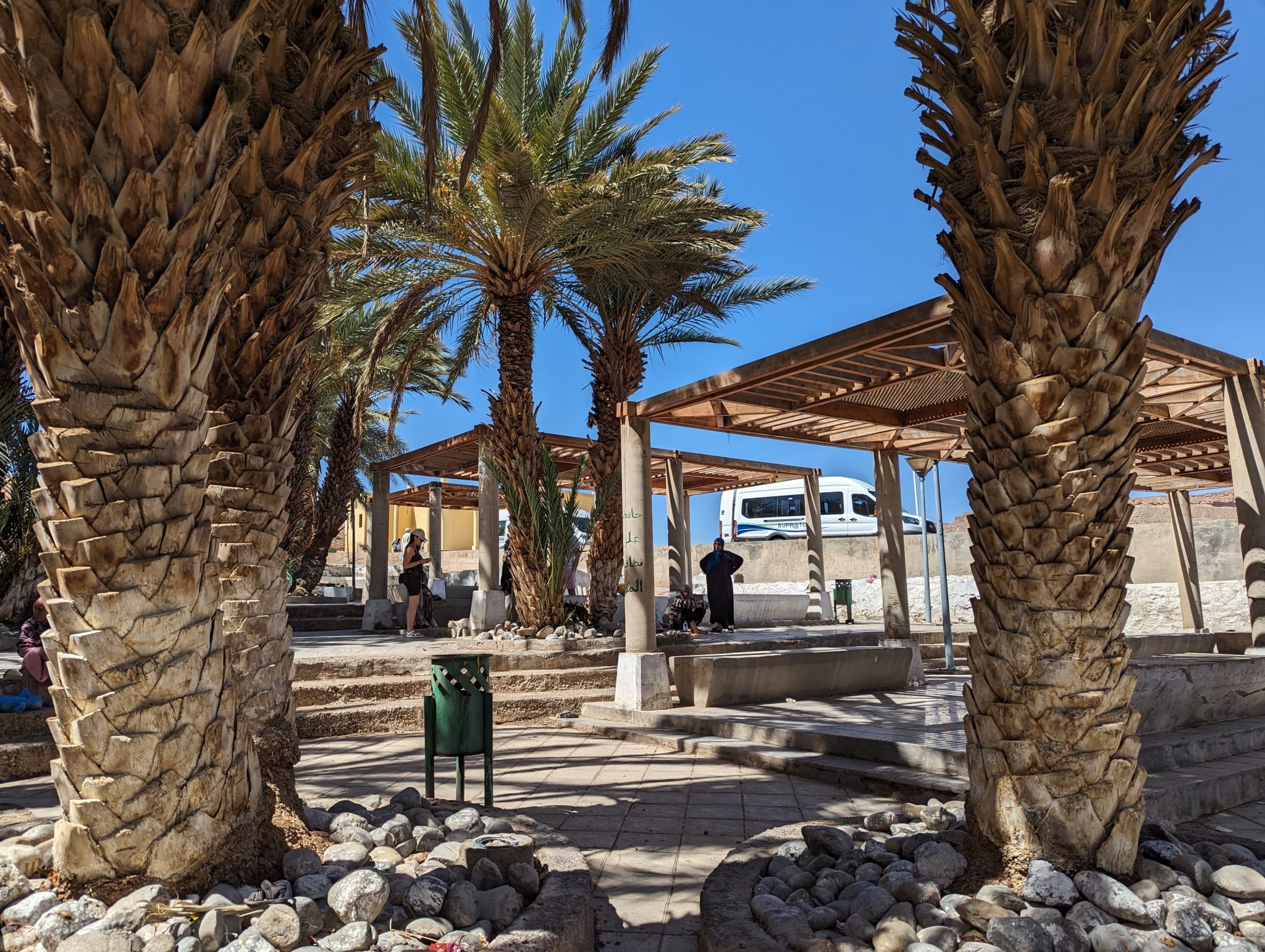 While the main “point” of the day is to get from point a to point b, we did make a few stops along the way. We did some pit stops for bathroom breaks and to stretch our legs. We also did stops in different places allowing our guide to share more about the region and his country. One thing I find fascinating is the lushness of some areas. The idea of an oasis seems a reality, though not the few palm trees and pond that I see in most cartoons. What’s more surprising is that in many cases it’s “engineered” this way. Apparently the first thing that gets planted are the palm trees. Once these are grown it creates a canopy and provides shade for the ground below. This allows for a more hospitable ecosystem to develop under the “shade” of the palms. Granted this does take years to develop, I think its amazing how innovative these solutions are in an otherwise inhospitable area.