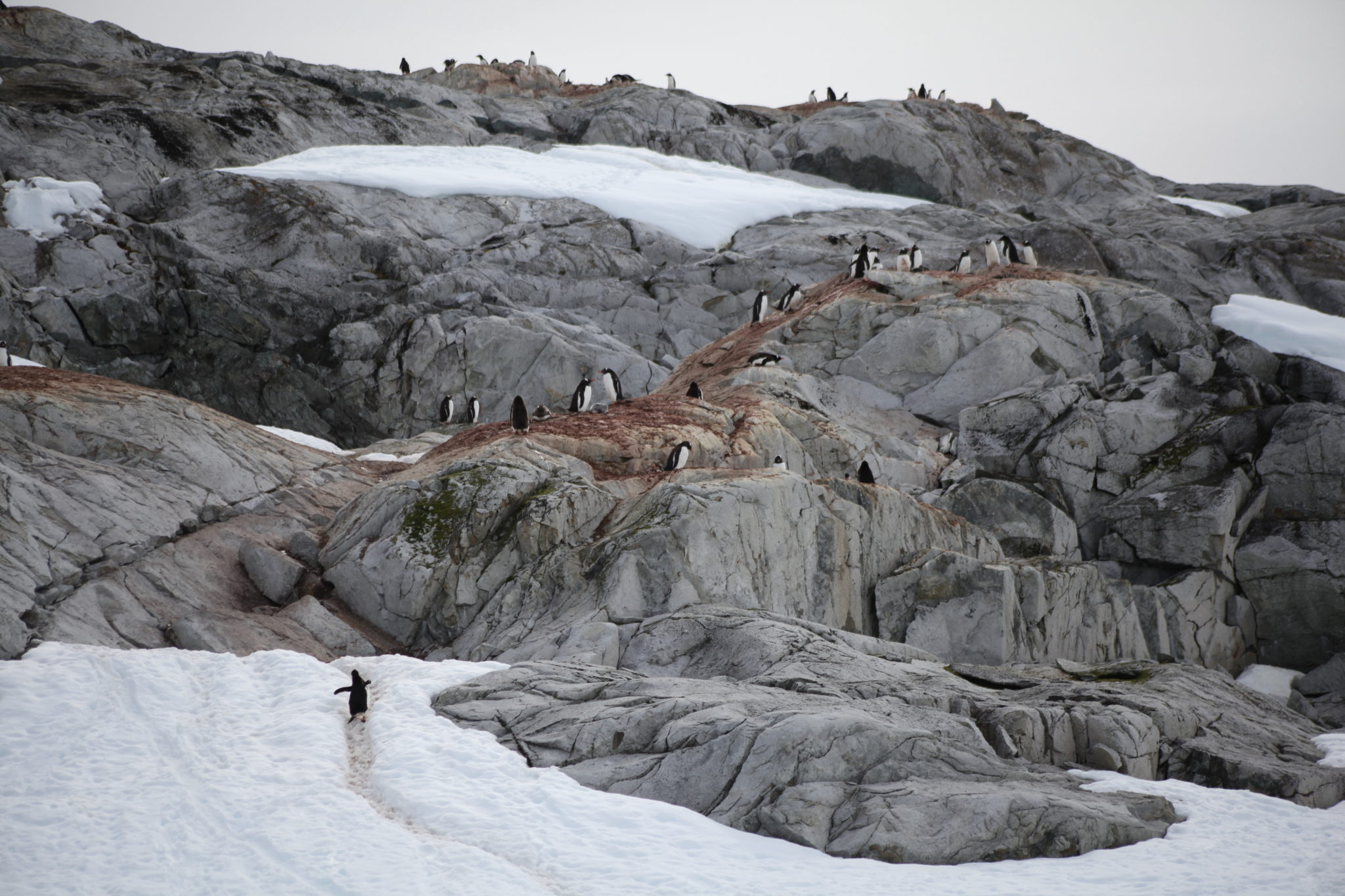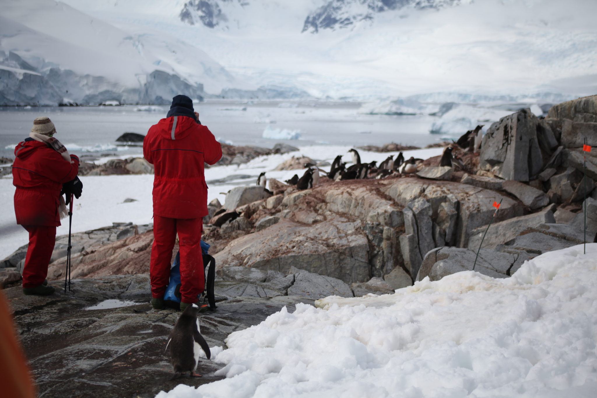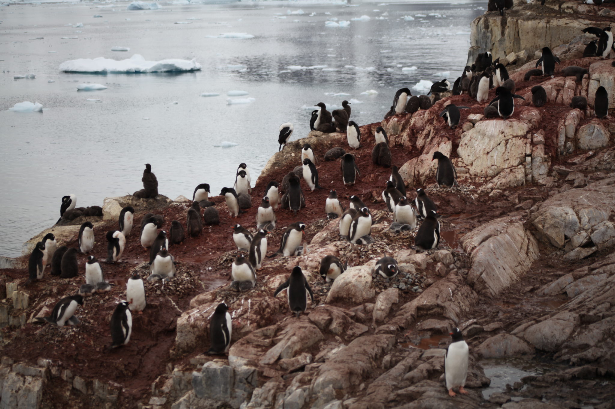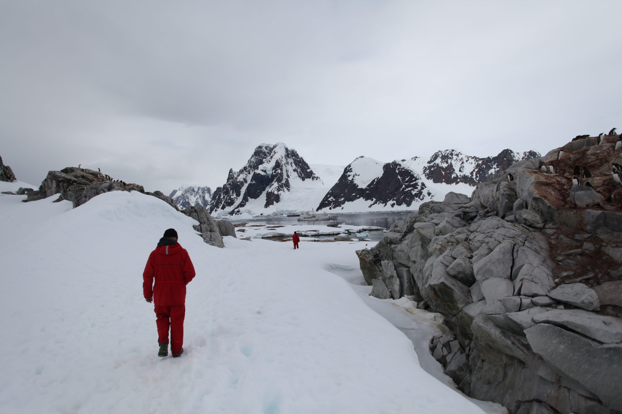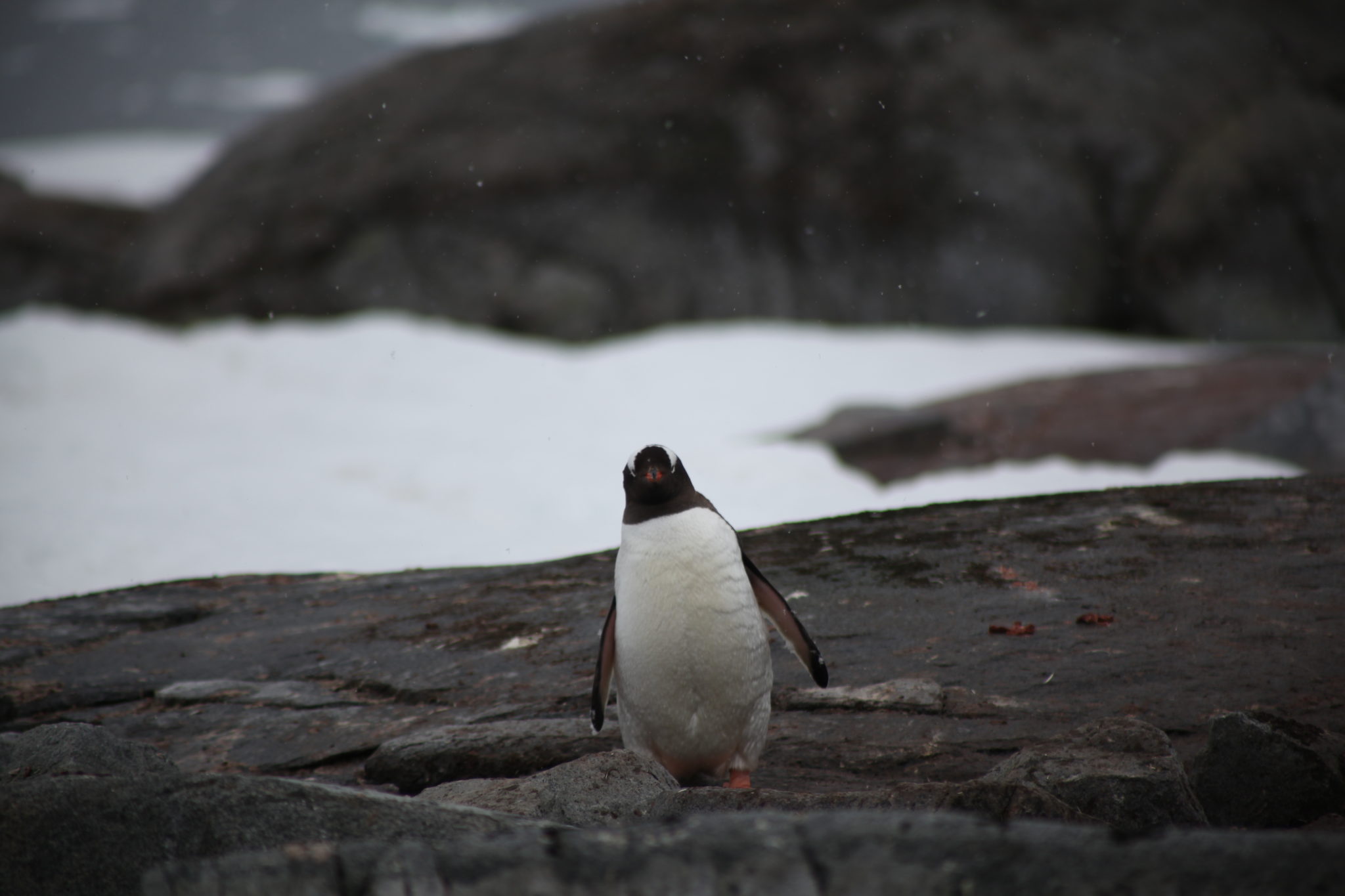 Back aboard the Ioffe and after a hot breakfast and shower I felt human again and was ready to tackle what the day had to offer. Our first stop would be a landing at Pleneau Island. Pleneau Island is pretty small and we got to explore a good chunk of it. On it were a few penguin rookeries and lots and lots of penguins! While they were slightly cautious at these large “red” creatures walking amongst them, they weren’t totally threatened and at times quite curious about who/what we were. Because of this they actually got quite close to us, making for some great encounters! (We were instructed not to approach penguins, but if they got near you it was ok as long as didn’t make aggressive movements causing them distress)