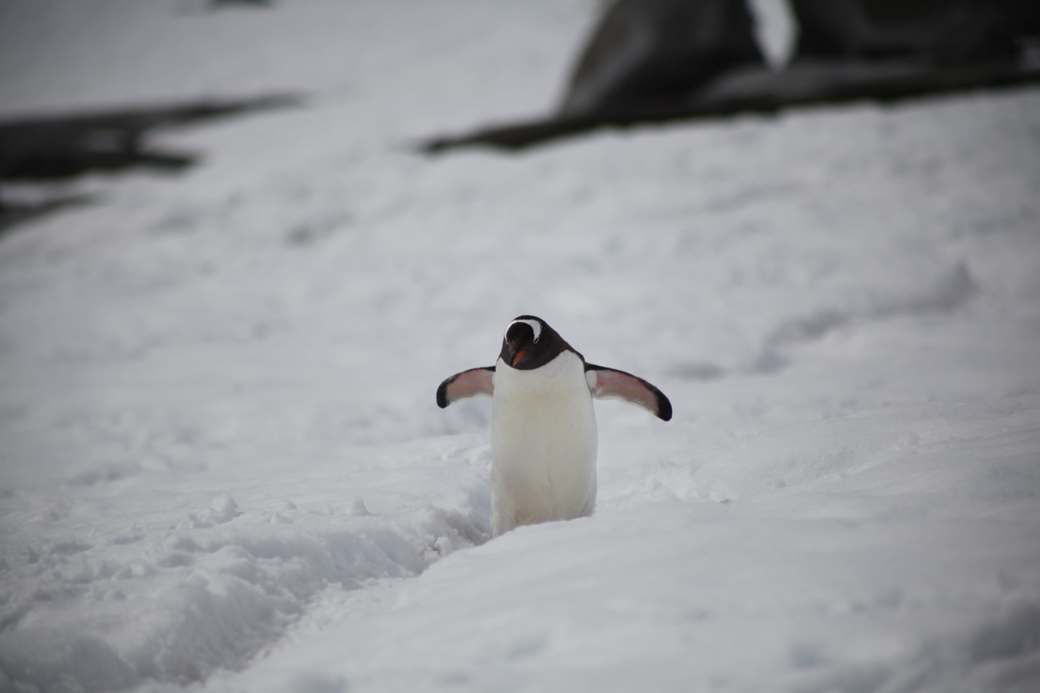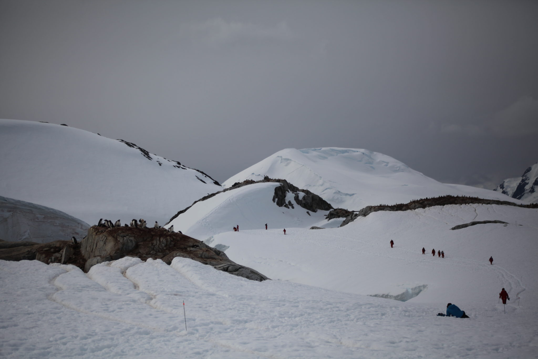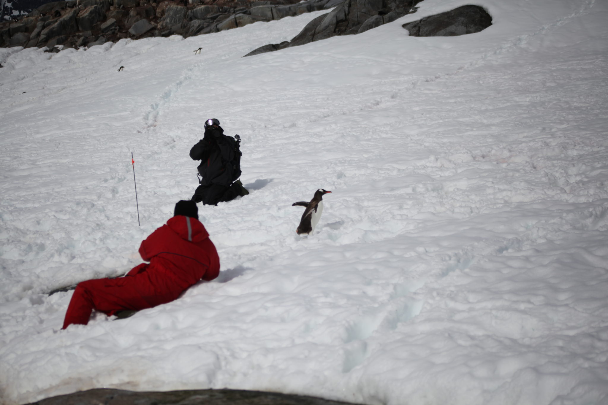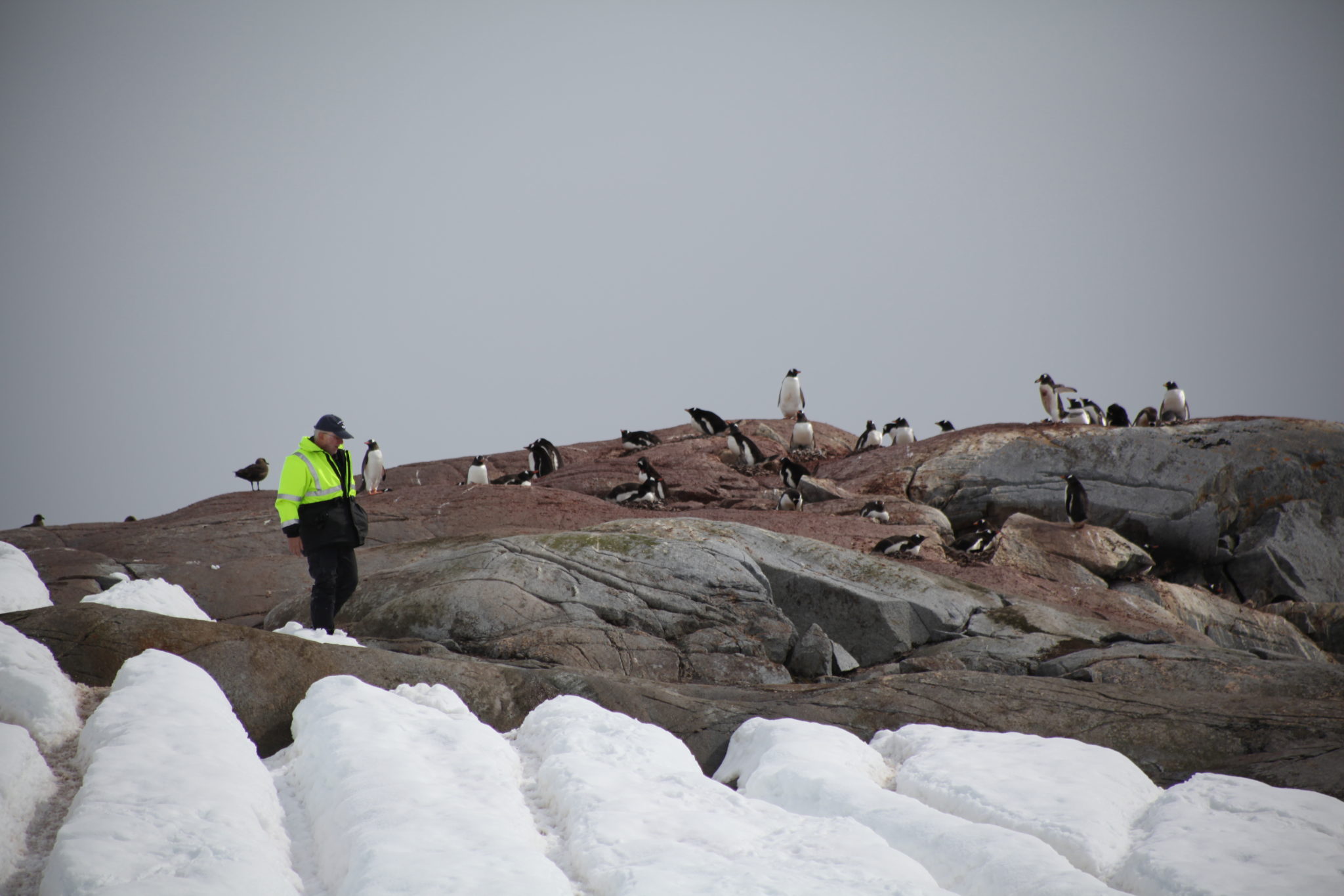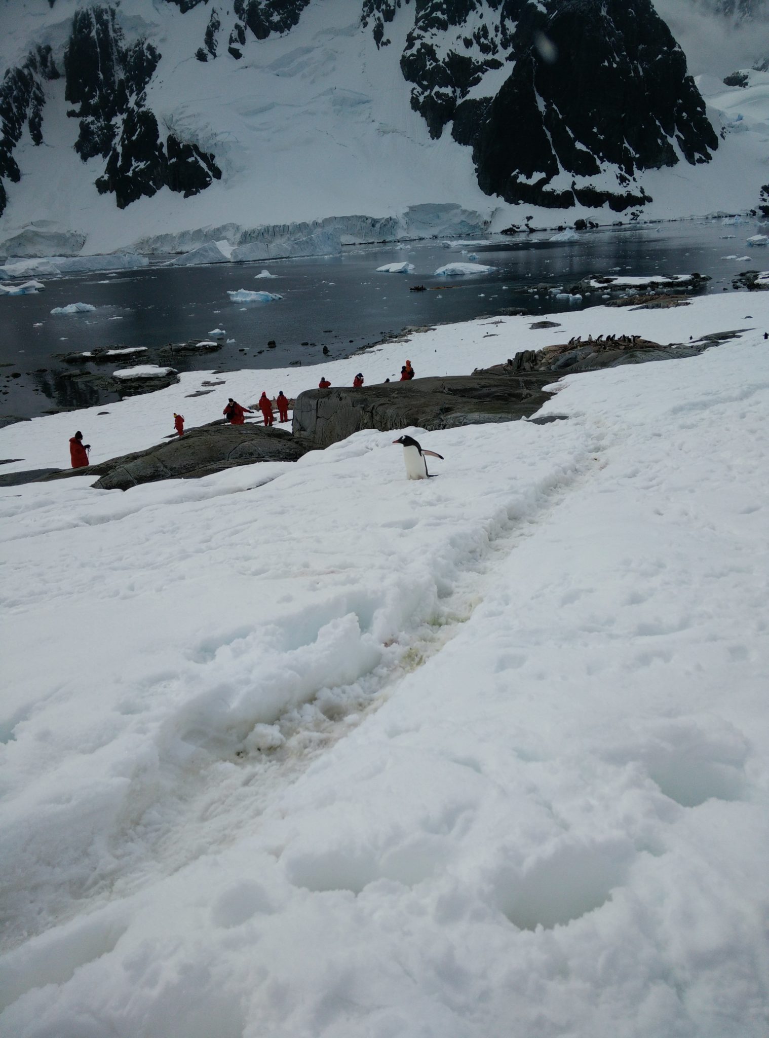 Back aboard the Ioffe and after a hot breakfast and shower I felt human again and was ready to tackle what the day had to offer. Our first stop would be a landing at Pleneau Island. Pleneau Island is pretty small and we got to explore a good chunk of it. On it were a few penguin rookeries and lots and lots of penguins! While they were slightly cautious at these large “red” creatures walking amongst them, they weren’t totally threatened and at times quite curious about who/what we were. Because of this they actually got quite close to us, making for some great encounters! (We were instructed not to approach penguins, but if they got near you it was ok as long as didn’t make aggressive movements causing them distress)