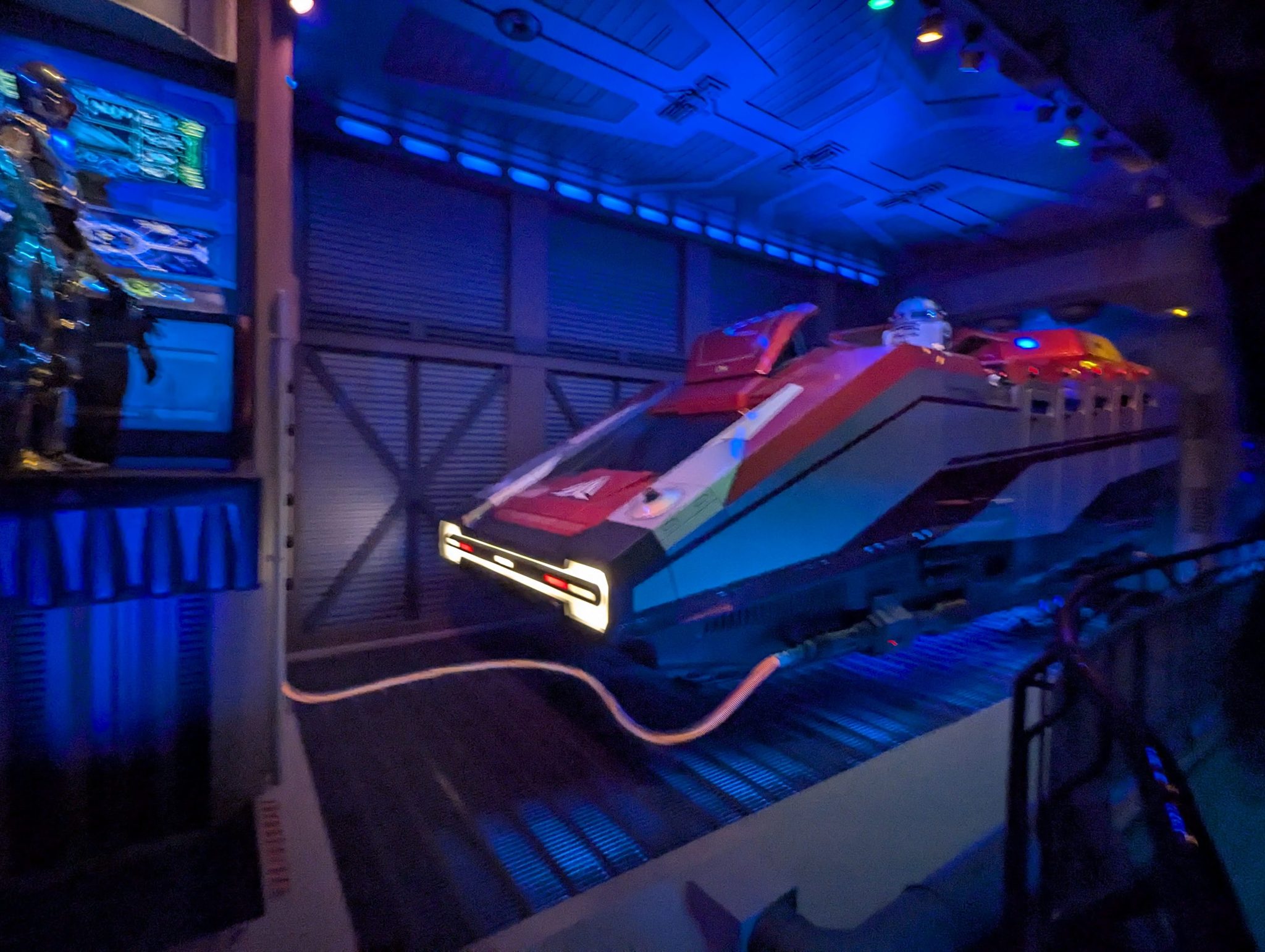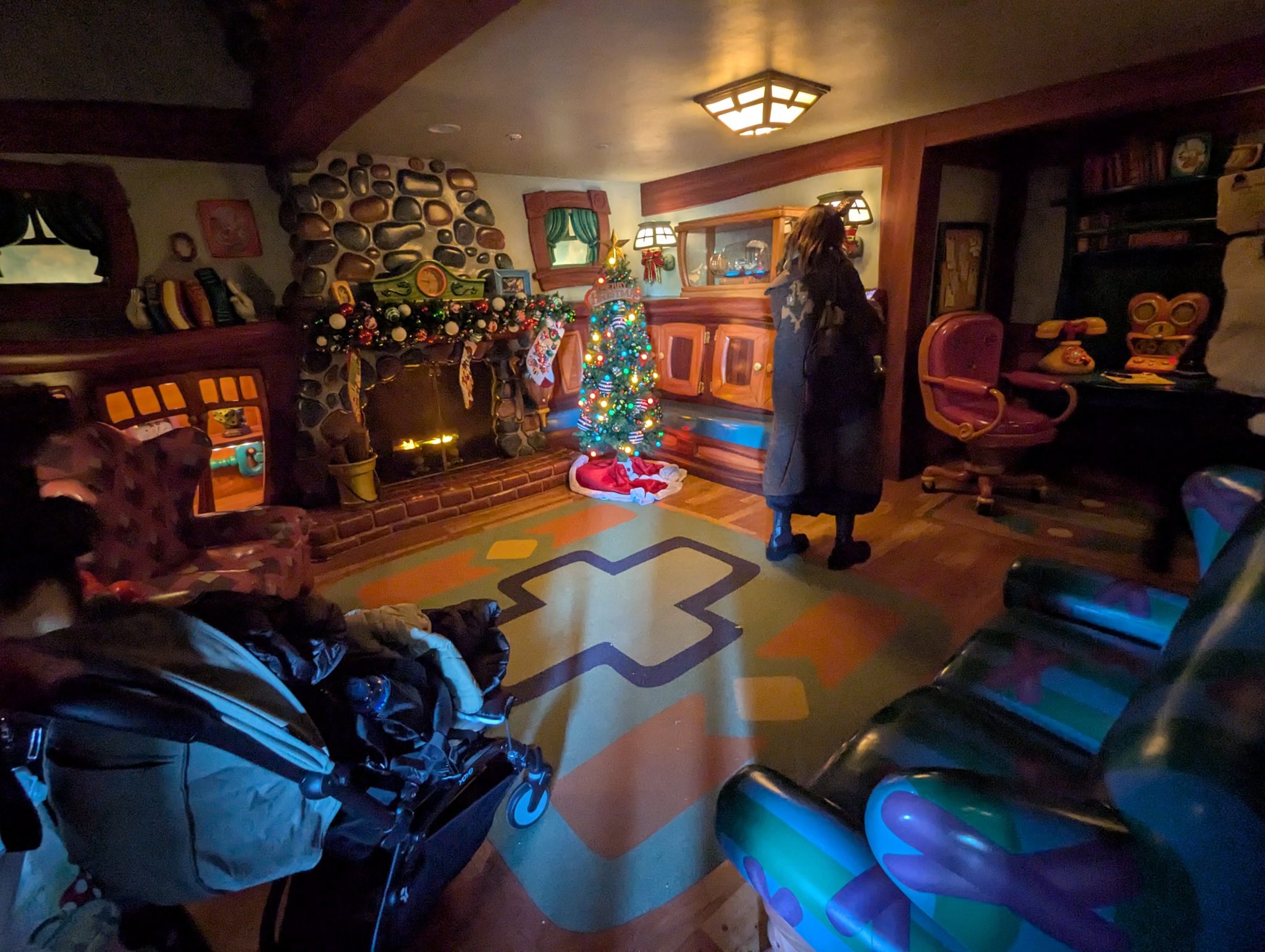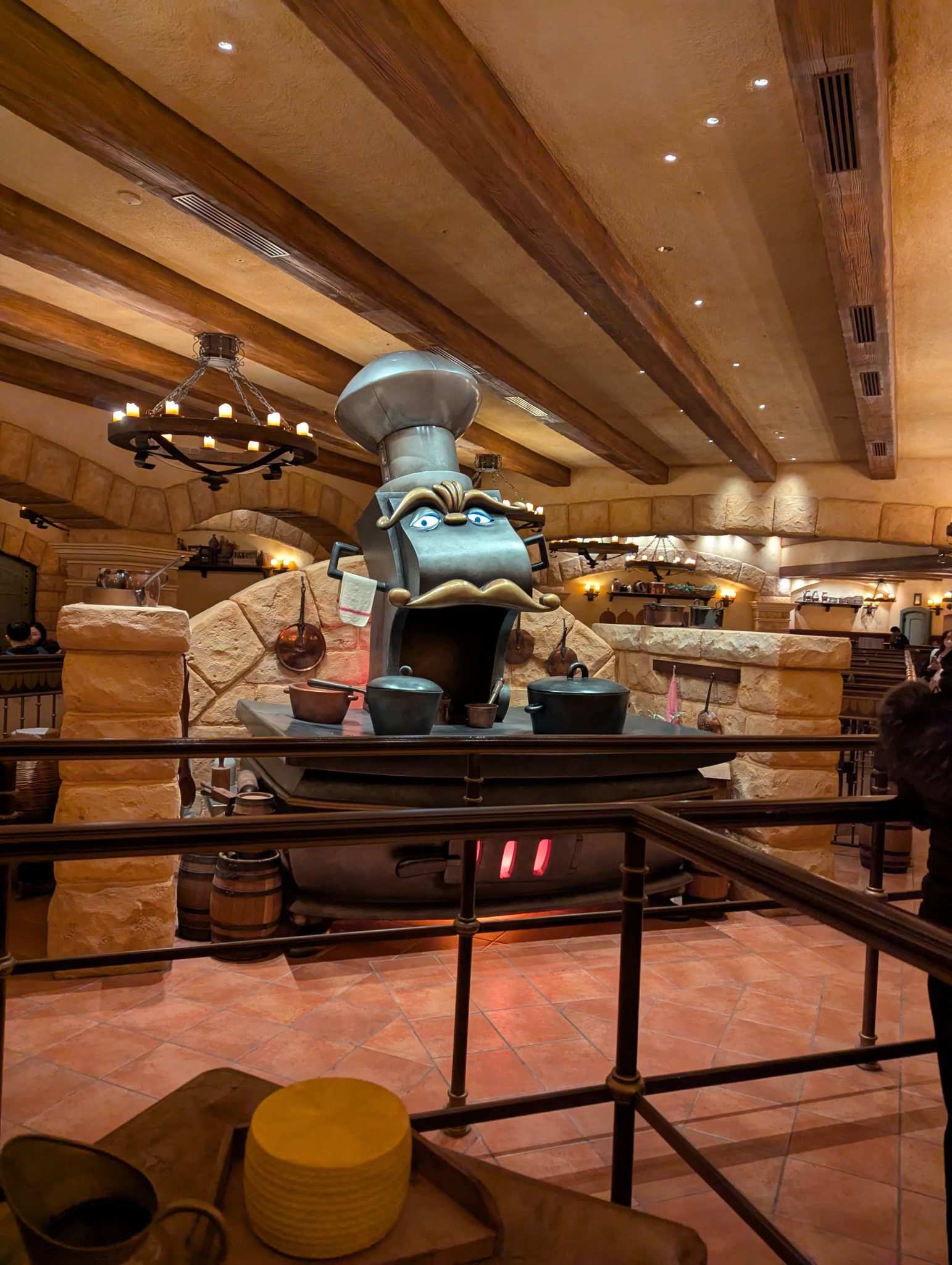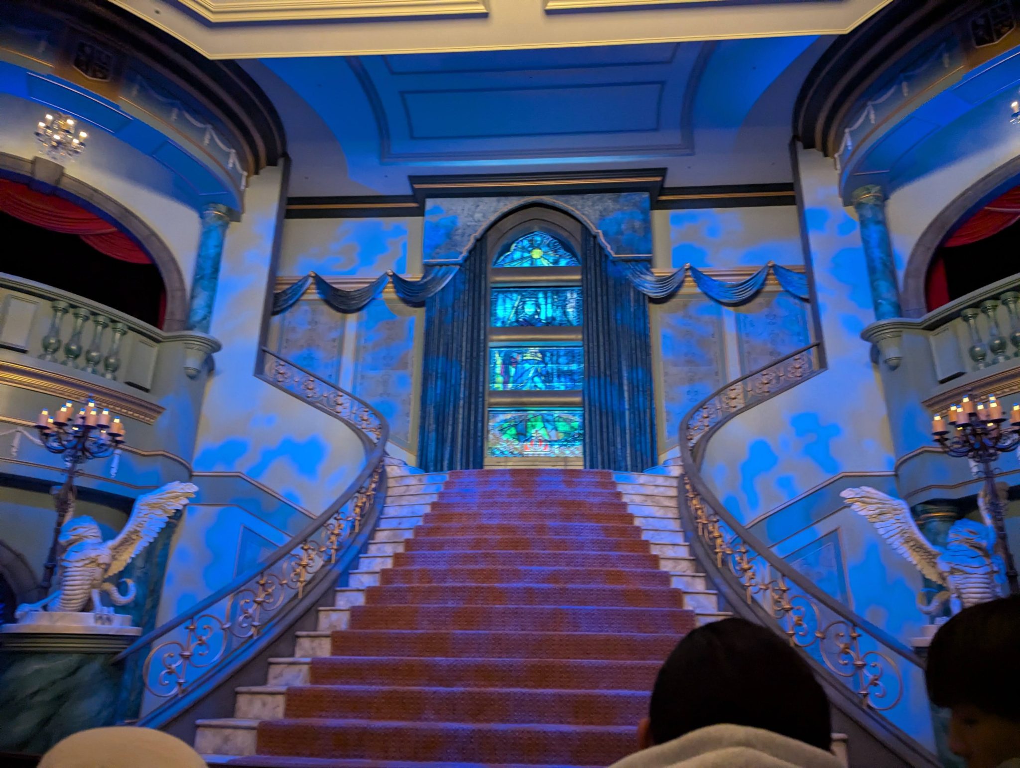 We manage to book a spot on the Enchanted Tale of Beauty and the Beast as our first ride. We make our way over to it and because of the reservation, we are able to skip a majority of the line. However, once you get inside the castle there is still a bit of a line to get through before you get to the actual ride. Thankfully there’s quite a bit to keep your attention while you wait. Like little animated or animatronic elements as you walk through the castle. Once you get to the ride you are seated on a tea cup which then “twirls” you through different iconic scenes in the Beauty and the Beast movie. Seeing as its still my favourite Disney movie, I enjoyed this one quite a bit!