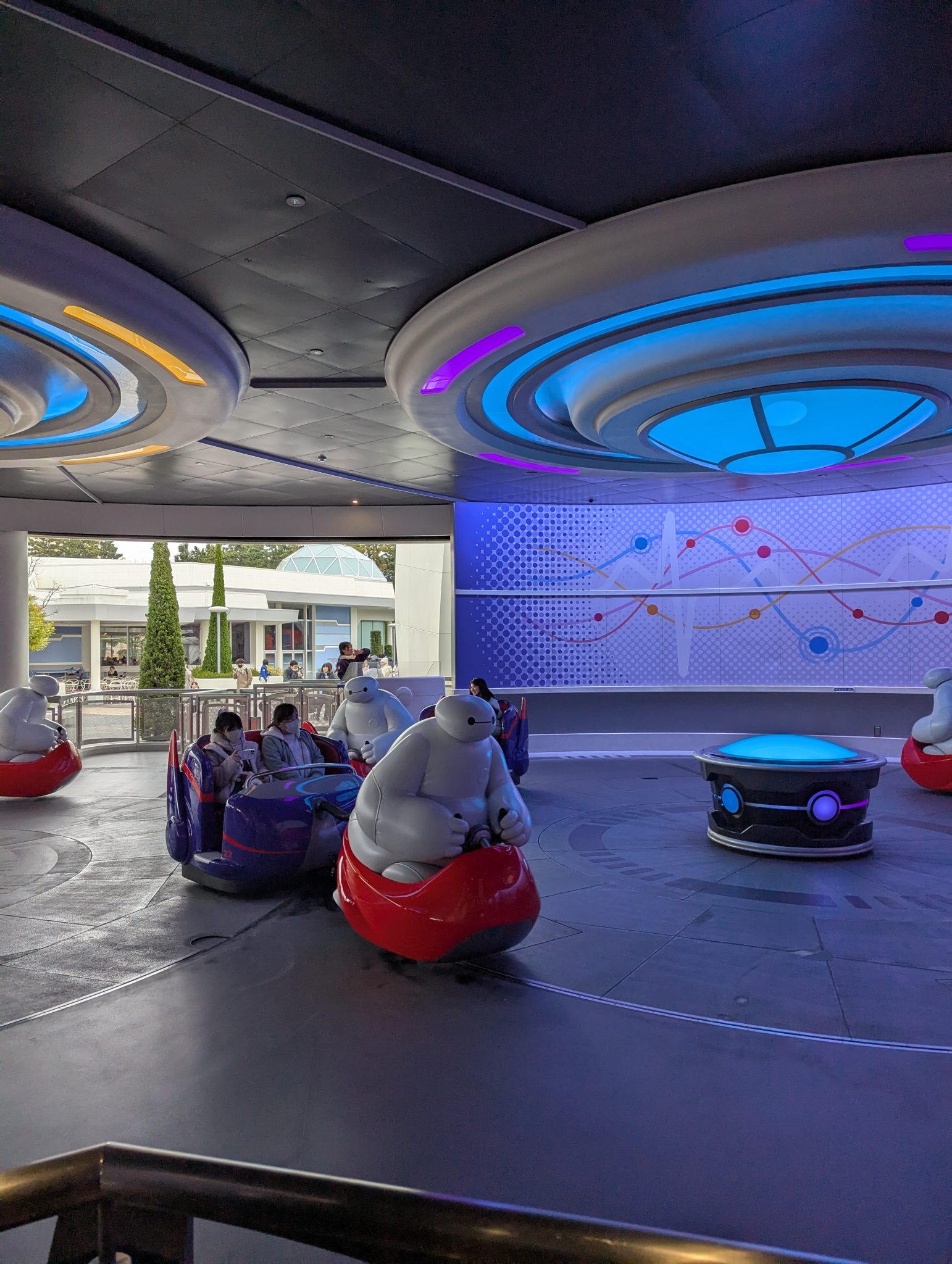 Our next Disneyland stop is the Happy Ride with Baymax. Apparently there’s a lot of hype behind this ride. The soundtrack is supposed to be super popular. Baymax himself is a beloved Disney character and the ride is supposed to be a bit like a dance club. However to be honest I think it might have been a miss for me. I’m not sure if it’s the cold temperatures or the time of day but it felt a bit muted for me. Antetokounmpo and I did this ride and while its kind of fun rolling around in the little carts, it didn’t feel like a super “dancy” atmosphere. Maybe its something that’s best experienced at night?