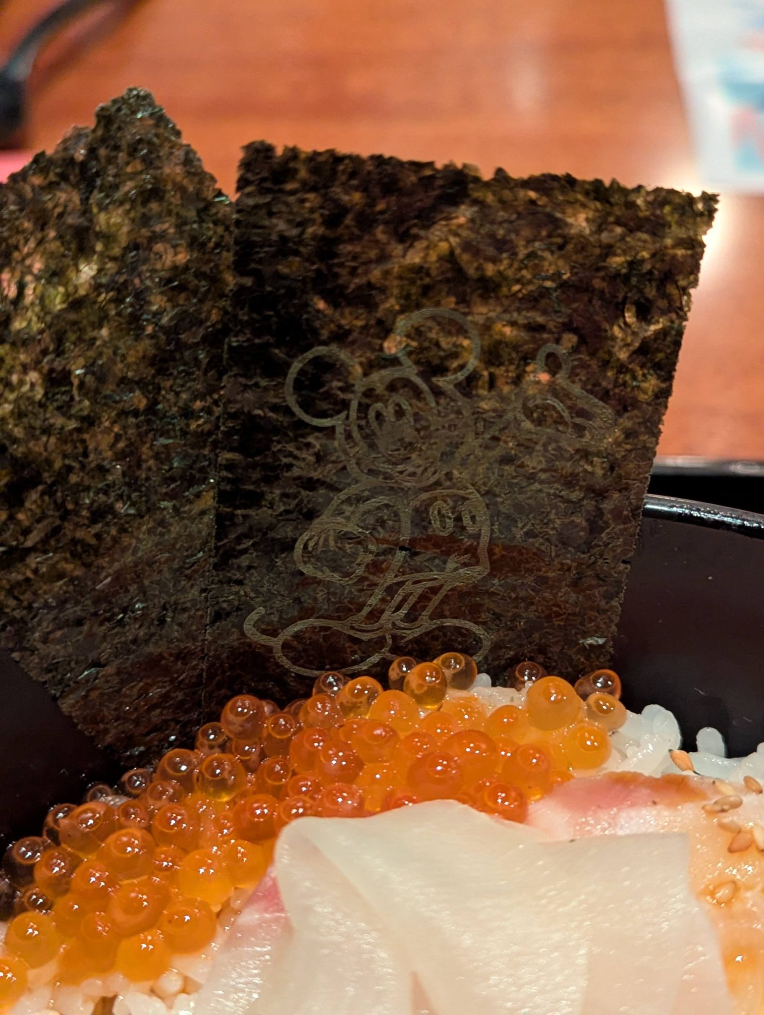 While there are many food options in Disneyland, a lot of it seems to be western type options. Lebron, Antetokounmpo and I opt for the Japanese option in the form of Restaurant Hokusai. I order a Chirashi set meal and like most meals in Japan it’s pretty good! It has some unique Disney inspired touches like Mickey Mouse printed on the seaweed! I will say, as with most things at Disneyland, compared to a normal meal in Tokyo, it is a bit pricey. But I would contend that the markup compared to other Disney parks in the world isn’t as egregious. So I didn’t have that big of a problem with the prices for food at this Disneyland!