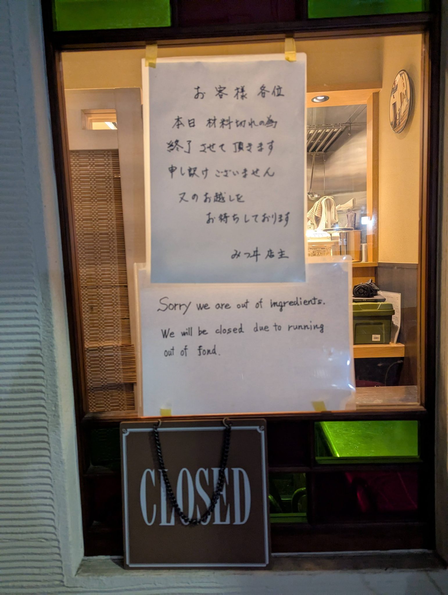 Once I get back to my neighbourhood, I’m pretty beat. I look up a pretty well reviewed ramen shop nearby and head straight there. It’s called Men Mitsui and I’m glad that when I arrive there is only one person waiting ahead of me. Soon enough they seat me, and I have an order of their ramen. The noodles are thick and chewy, the broth is rich and delicious. sufficed to say after a long day of walking out in the cold this ramen really really hit the spot. To my surprise (and glee) after leaving the restaurant I note that they actually closed while I was inside citing the lack of ingredients. So I feel extra lucky to have gotten in when I did!