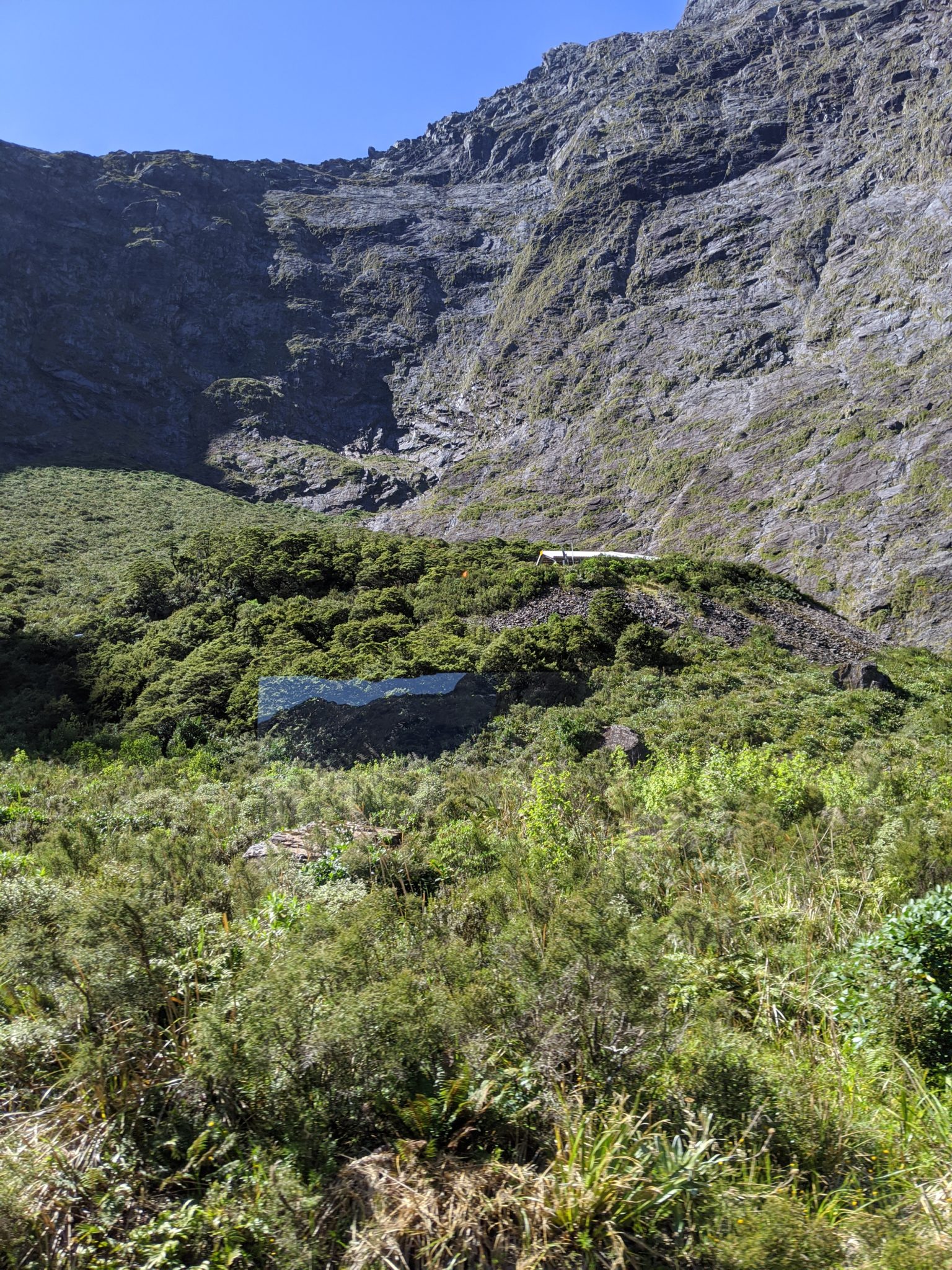 After returning to the port, we say good bye to our friends and board our bus back to Te Anau. Another problem with being on a bus is that you are stuck on one side of the bus. So, on our way up, our windows didn’t face the side of the highway where the damage and restoration work is. On the way down though, I did snap a photo or two of the damage and the work that’s already been done to bring it all back.