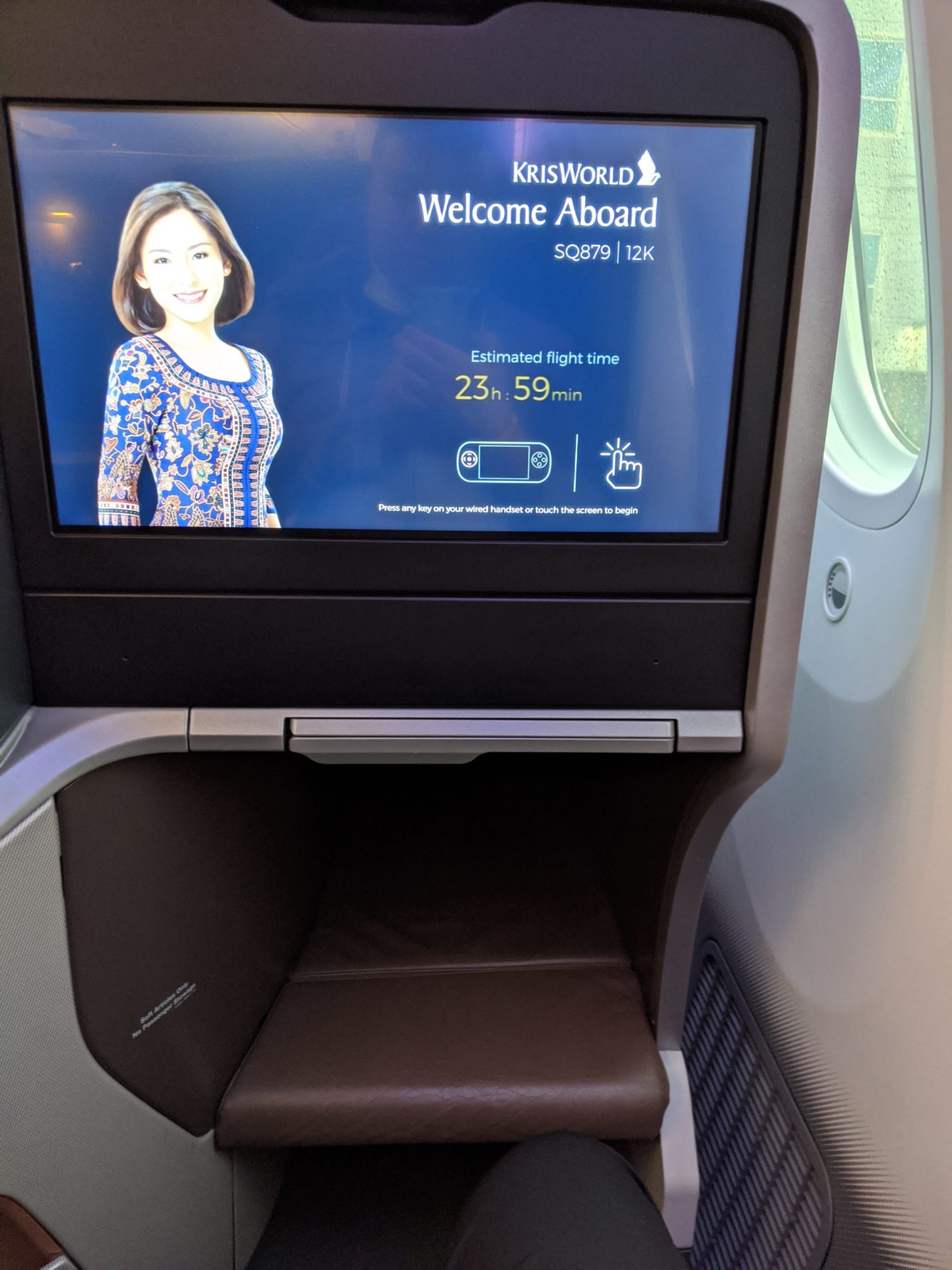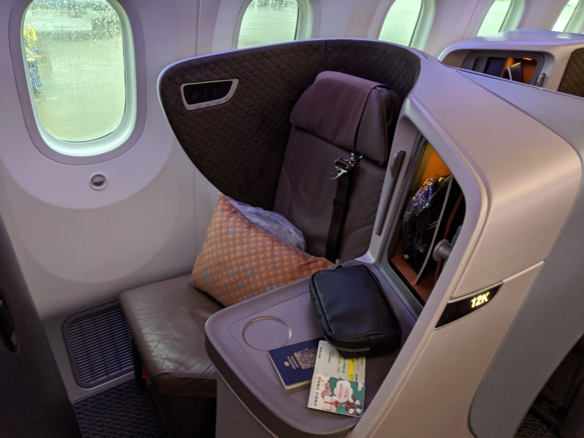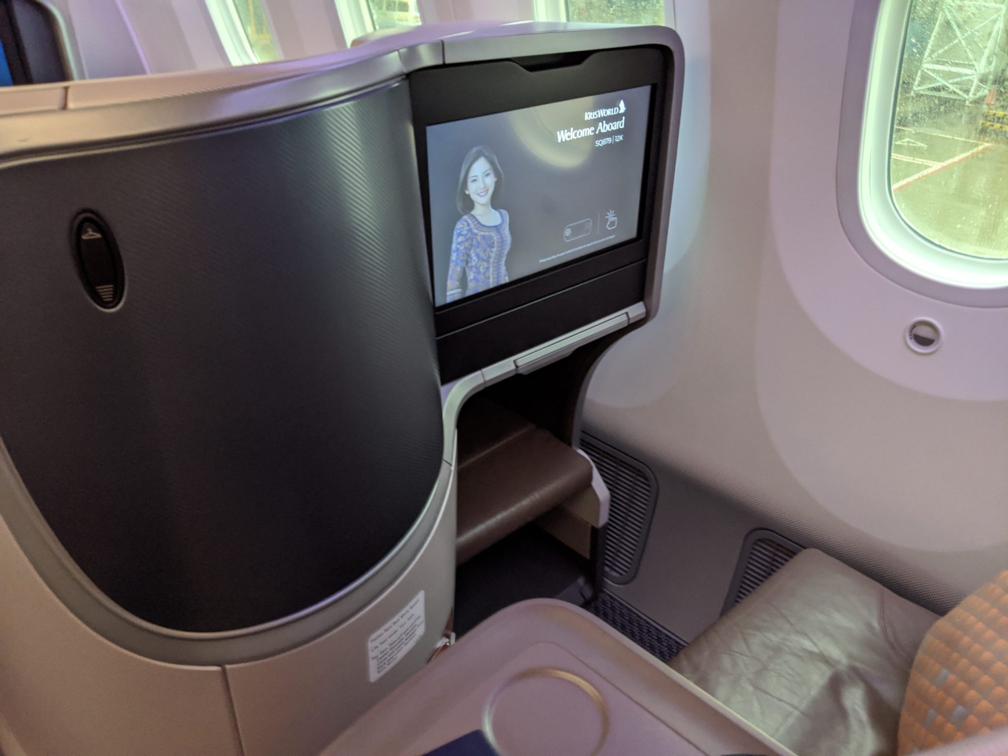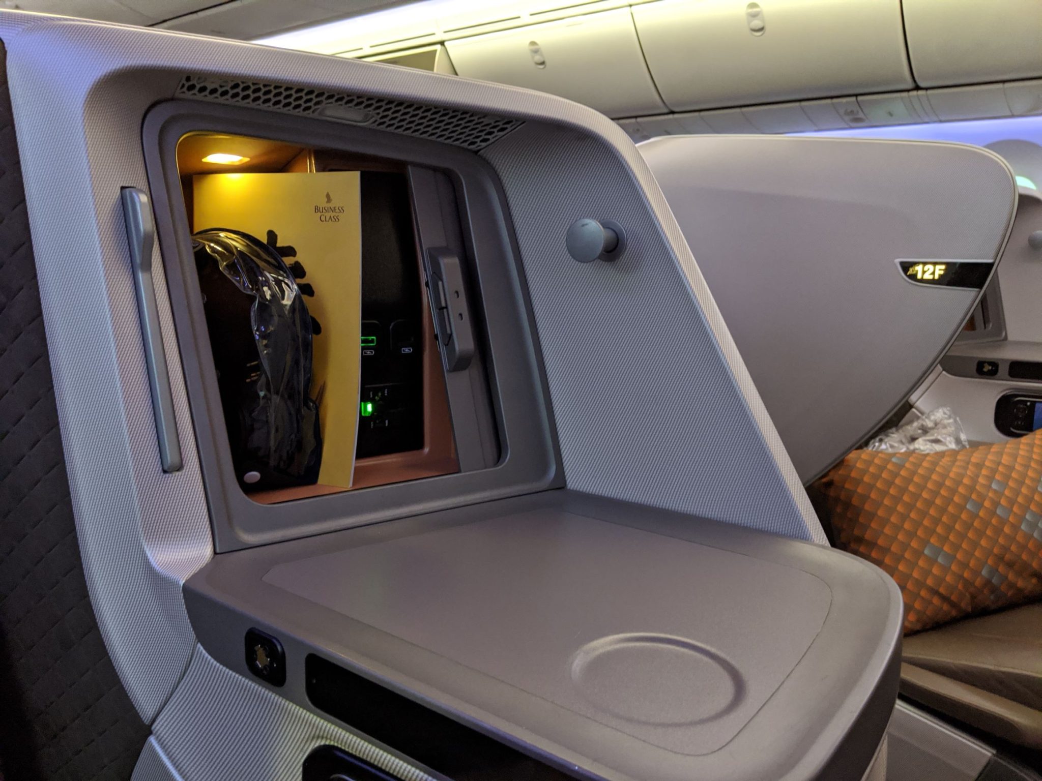 My final flight for the day was the Singapore airlines flight to Singapore. I was also eagerly anticipating this flight since I’d heard so much about their business class product. The seat is modern and also setup quite nicely.
