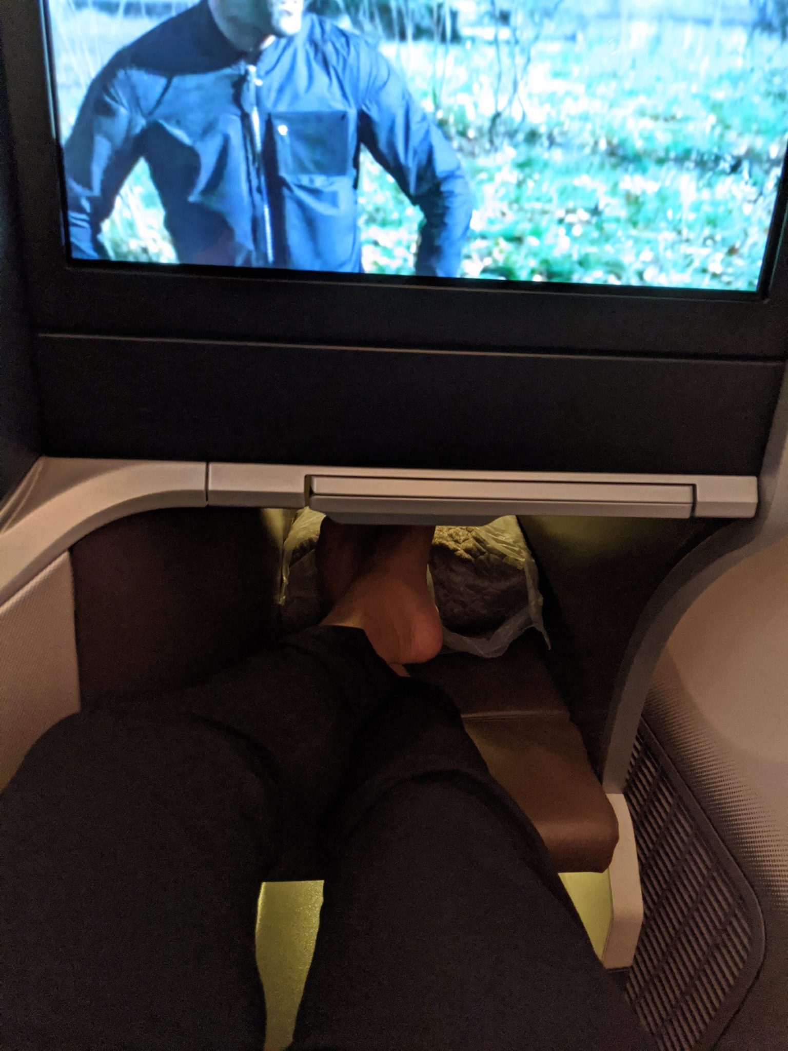After watching a movie, I went into lie flat mode for a very comfortable nap.