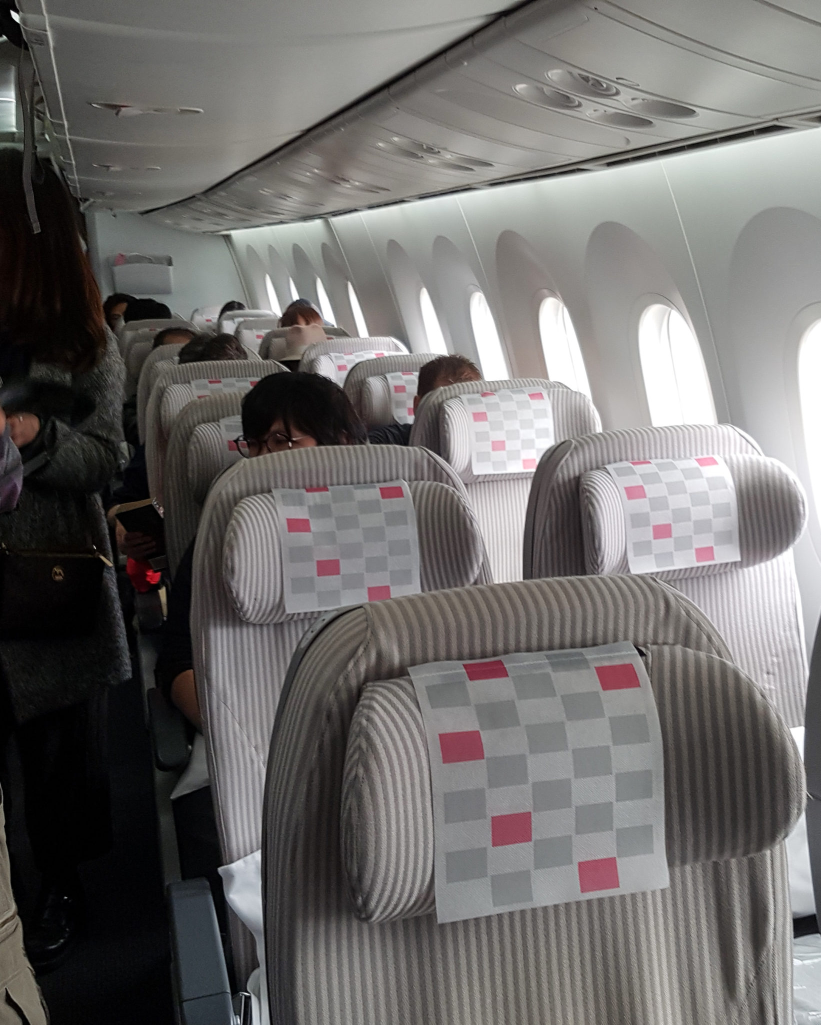 The flight itself was uneventful and smooth. I have to give props to JAL on such a great in flight experience. I’ve had the chance to fly on some great airlines and JAL is right up there with the best of them! The Dreamliner we flew was set up in a 2-4-2 cabin configuration so It was nice for Salmonella and I to have the row to ourselves.