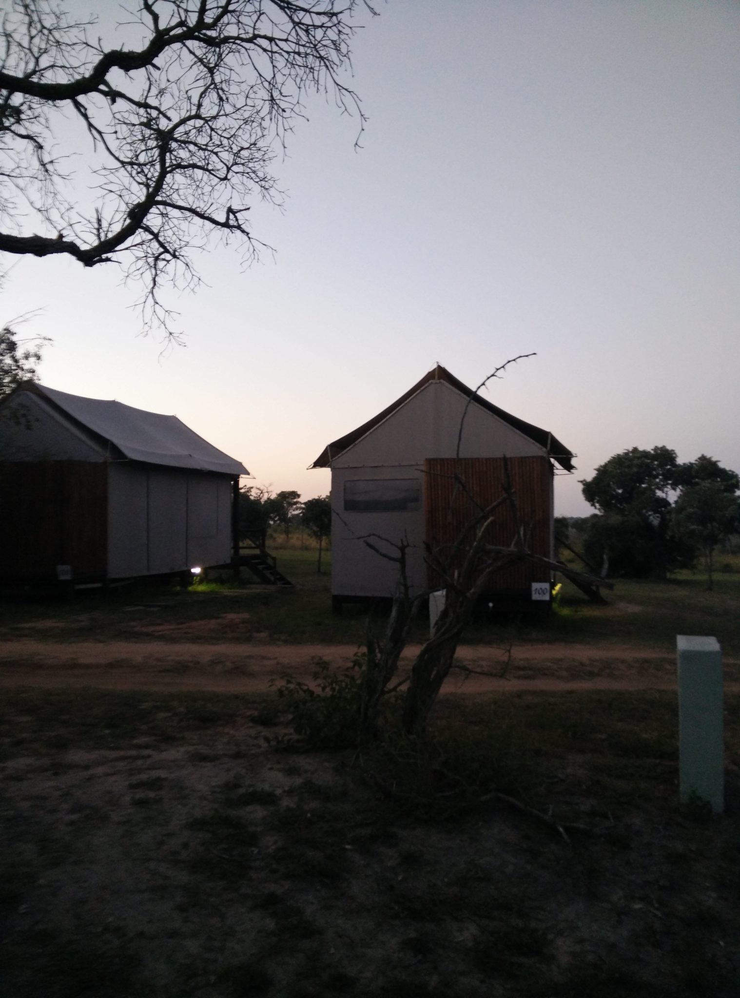 Onward towards our final destination for the day: Nkambeni Safari lodge by the Numbi Gate in Kruger National Park. We were told that this would be tented camping and prepared for it, but what we got were semi permanent wood structures with tent tops. It was pretty luxurious as far as tenting goes, though (as I’ve found with most of my accommodation in Africa thus far) Wifi was non existent save for a 20 minute voucher we would get for our entire stay. There was a main lodge with a bar, lounge, reception and a main eating area (all meals were served in the main lodge) Muscles and I would share a room and we got settled and unpacked. We had a buffet dinner and went to bed pretty early as it was dark, and we had an early morning game drive that would leave at 6. Really looking forward to tomorrow when we’ll be crossing one of our “musts” from the list we originally had for Africa.