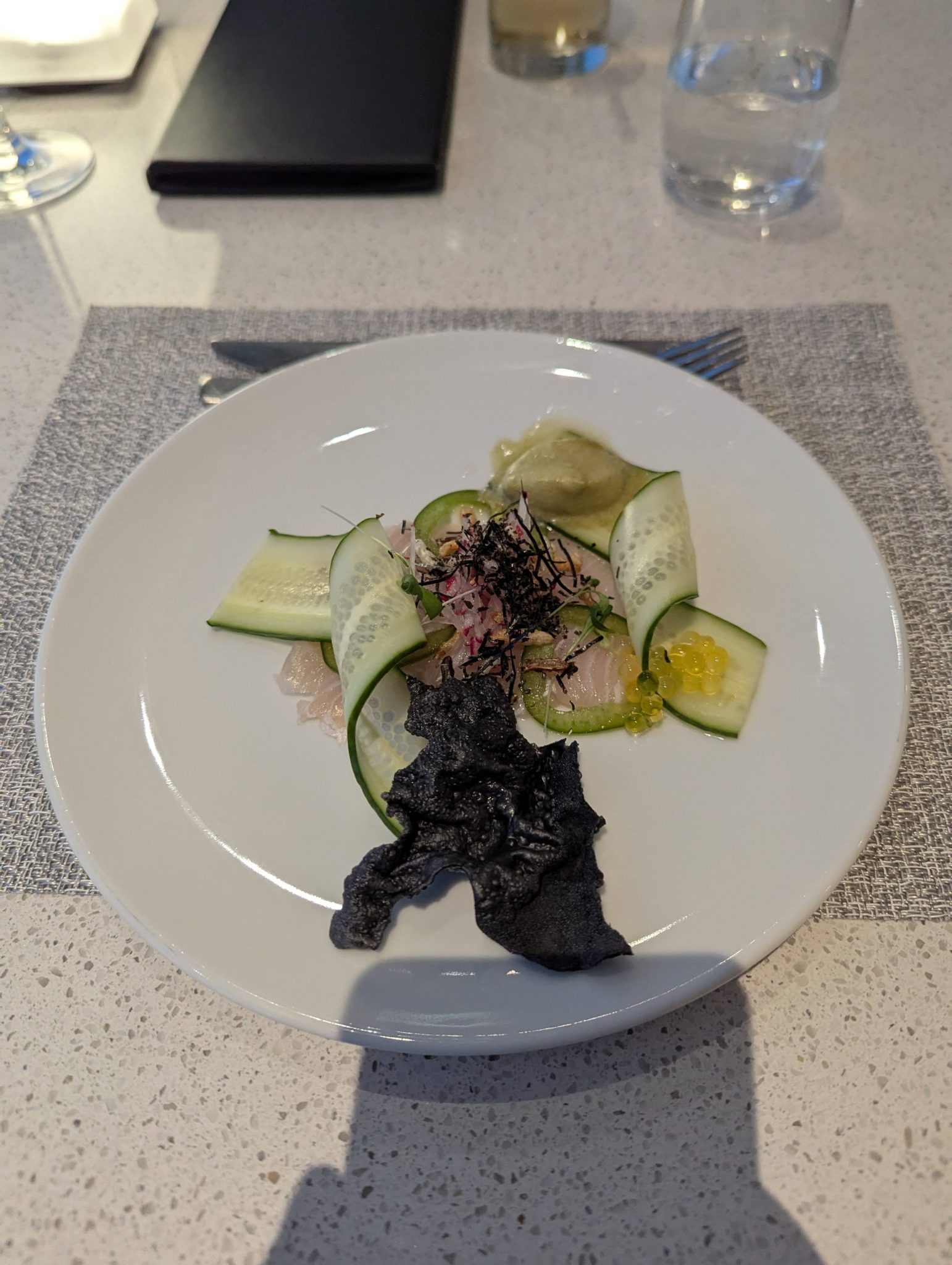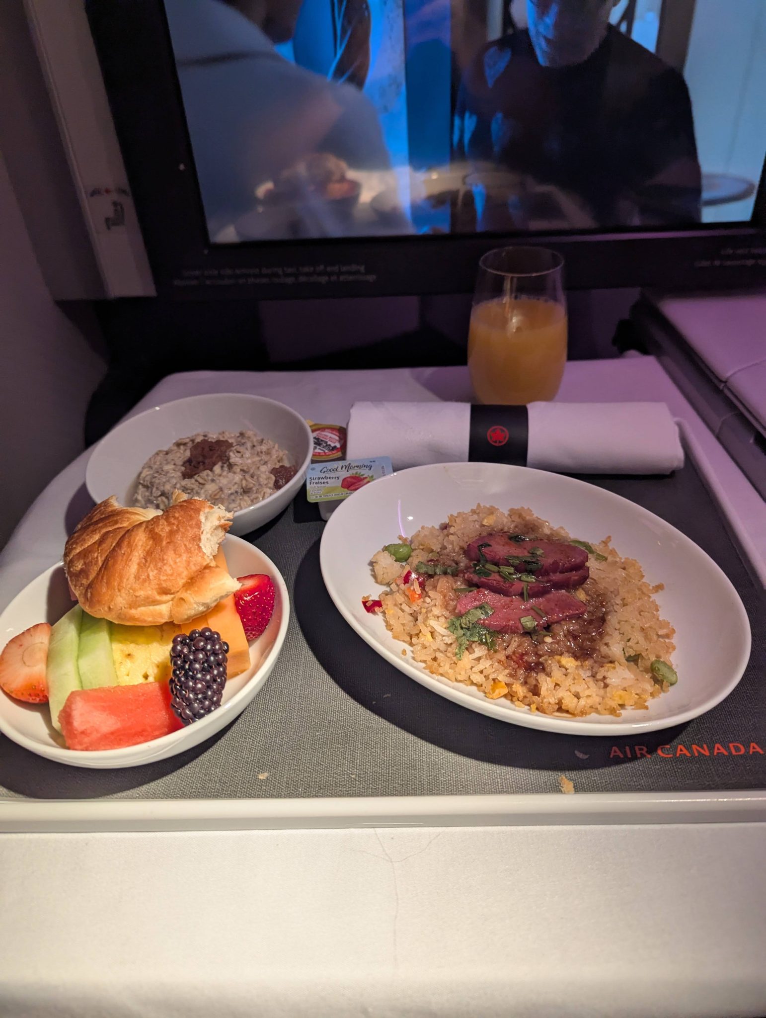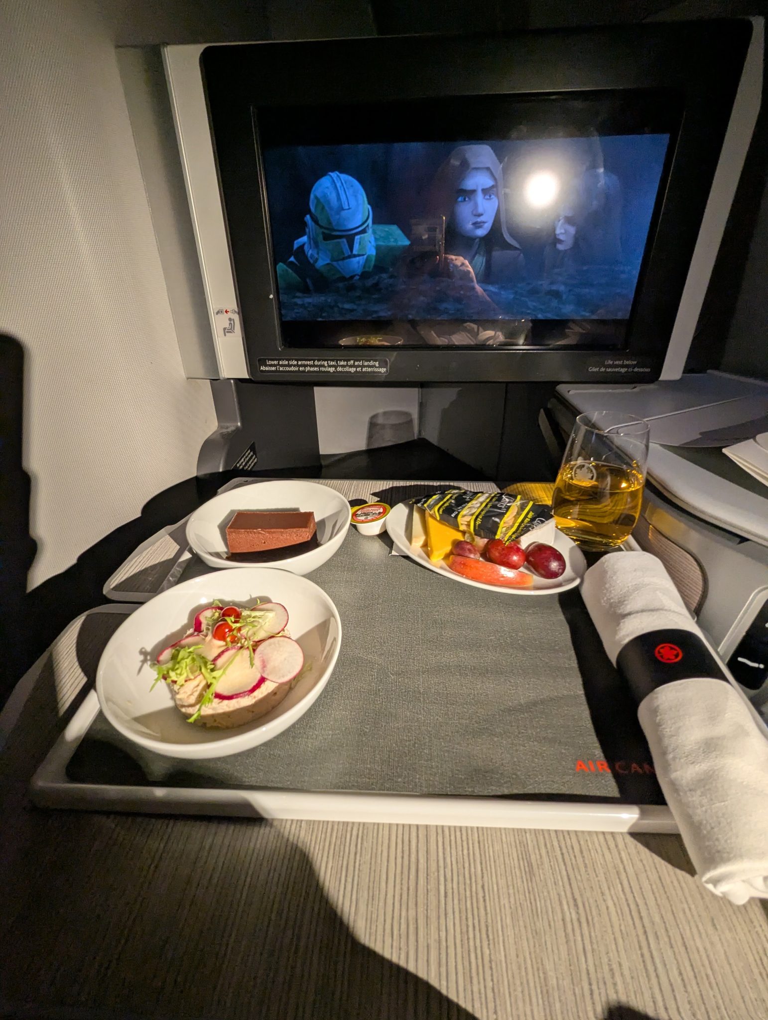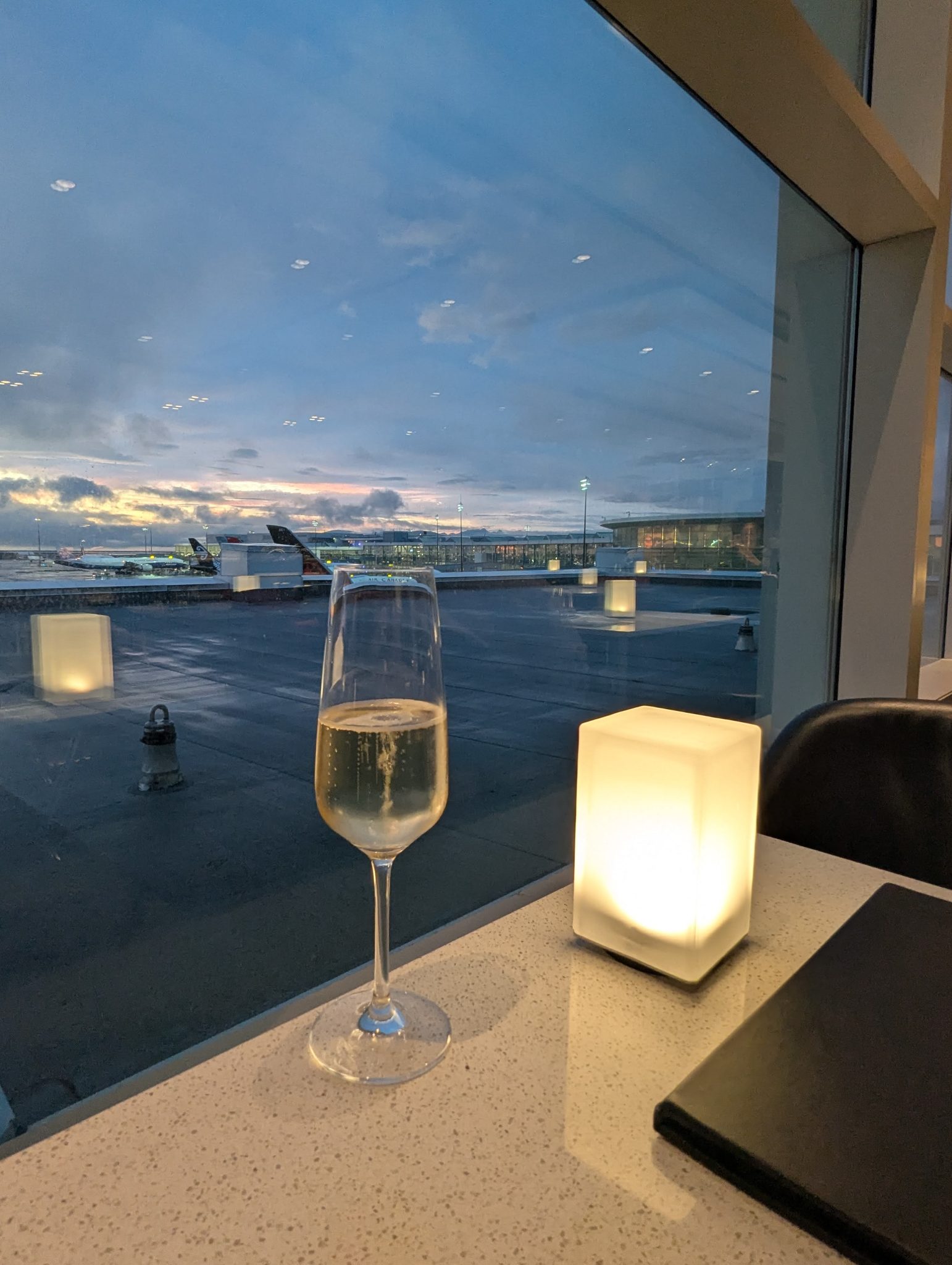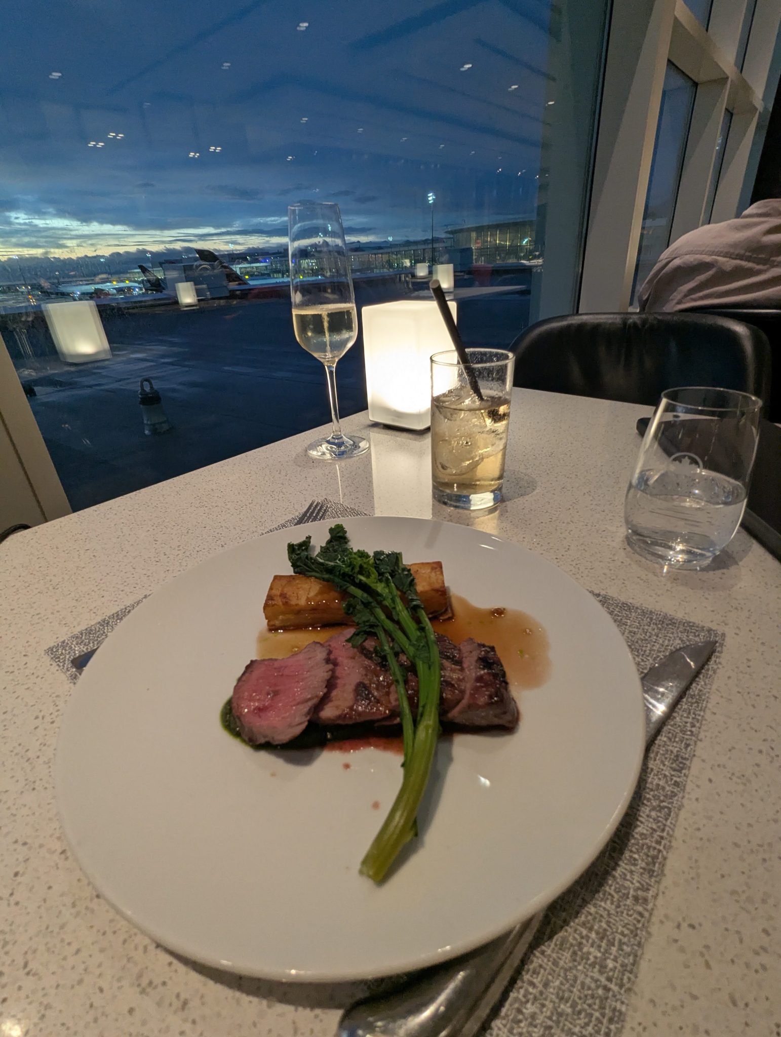 After leaving the Plaza Premium, I make my way to the Maple Leaf Lounge which has the Air Canada Signature Suite above it. This is a more exclusive part of Air Canada’s lounge system and something I’ve only experienced once so far. There’s an elevated food and drink offering which I availed myself of. I intended to have dinner here so to start I had the Hamachi Sashimi and for my main I had the dry aged sirloin steak. Along with the tasty food, it has great views of the tarmac so its a bit of an Av geek’s dream to dine and nerd out at the same time!