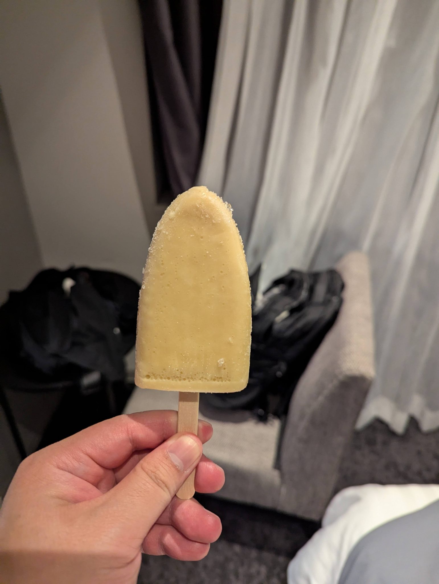 After devouring the Ramen, I stop by a local 711 and pick up a few new snacks for me to try. On the docket tonight, Banana Ice Cream bar!