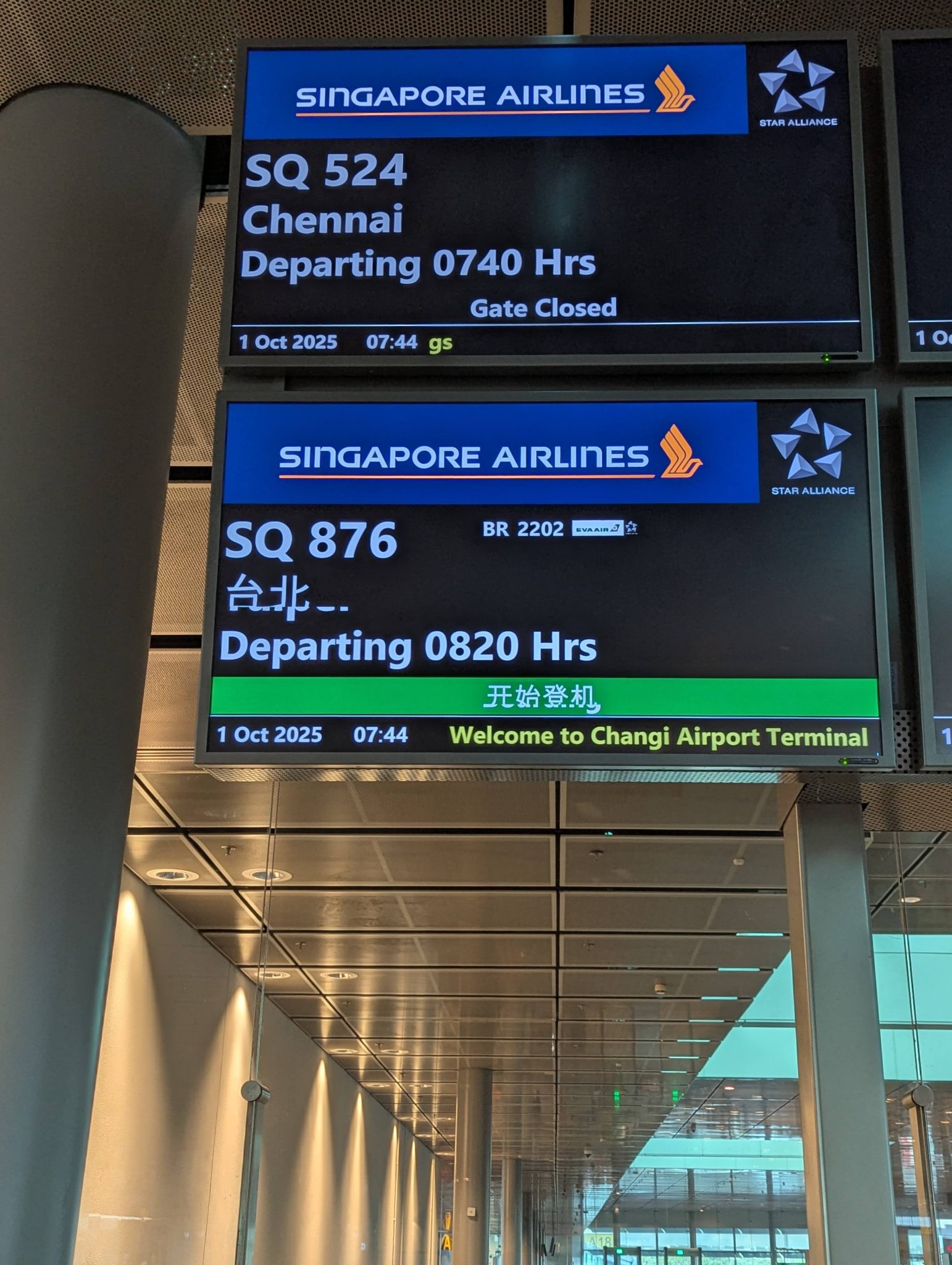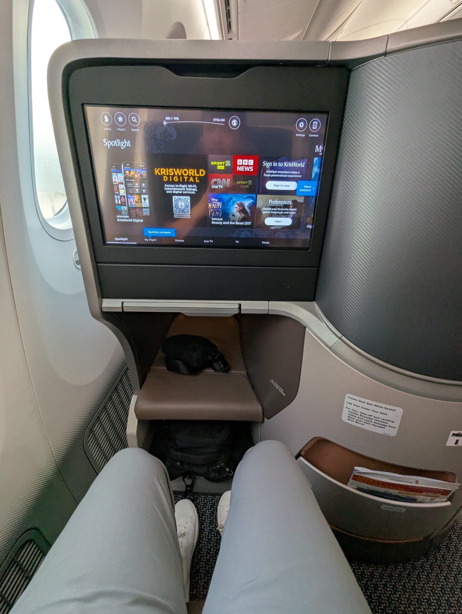 I have two more flights today, the first of which is a Singapore to Taipei flight. I make my way to the gate and board, excited for my Singapore Airlines flight. They’re one of my favourite airlines and I’m always happy to fly with them. Aboard they serve more breakfast and I opt for a combination of dim sum. It’s a four hour flight and after breakfast I lie down a little to rest my eyes a bit. Before I know it, we descending to Taipei.