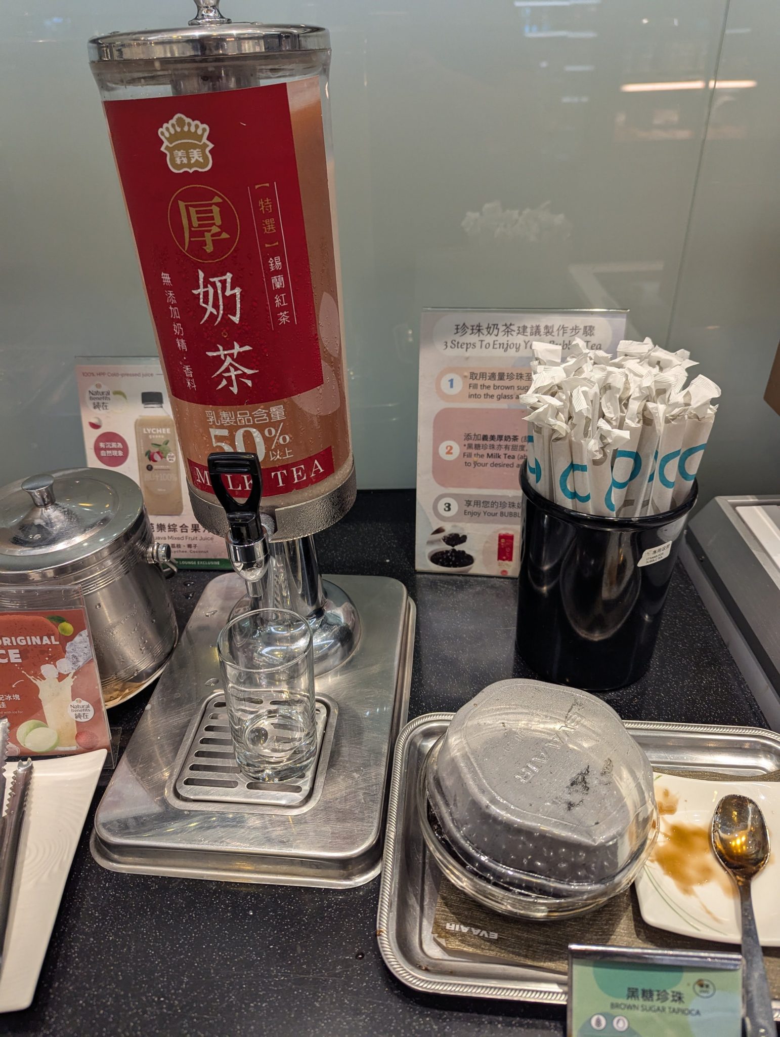 I have a shorter two hours layover in Taipei. I head straight to the Eva Air Lounge. I’m not hungry at all at this point, but I do make sure to get some self made bubble tea in the lounge! After a brief rest, I head to my gate for my last flight to Fukuoka!