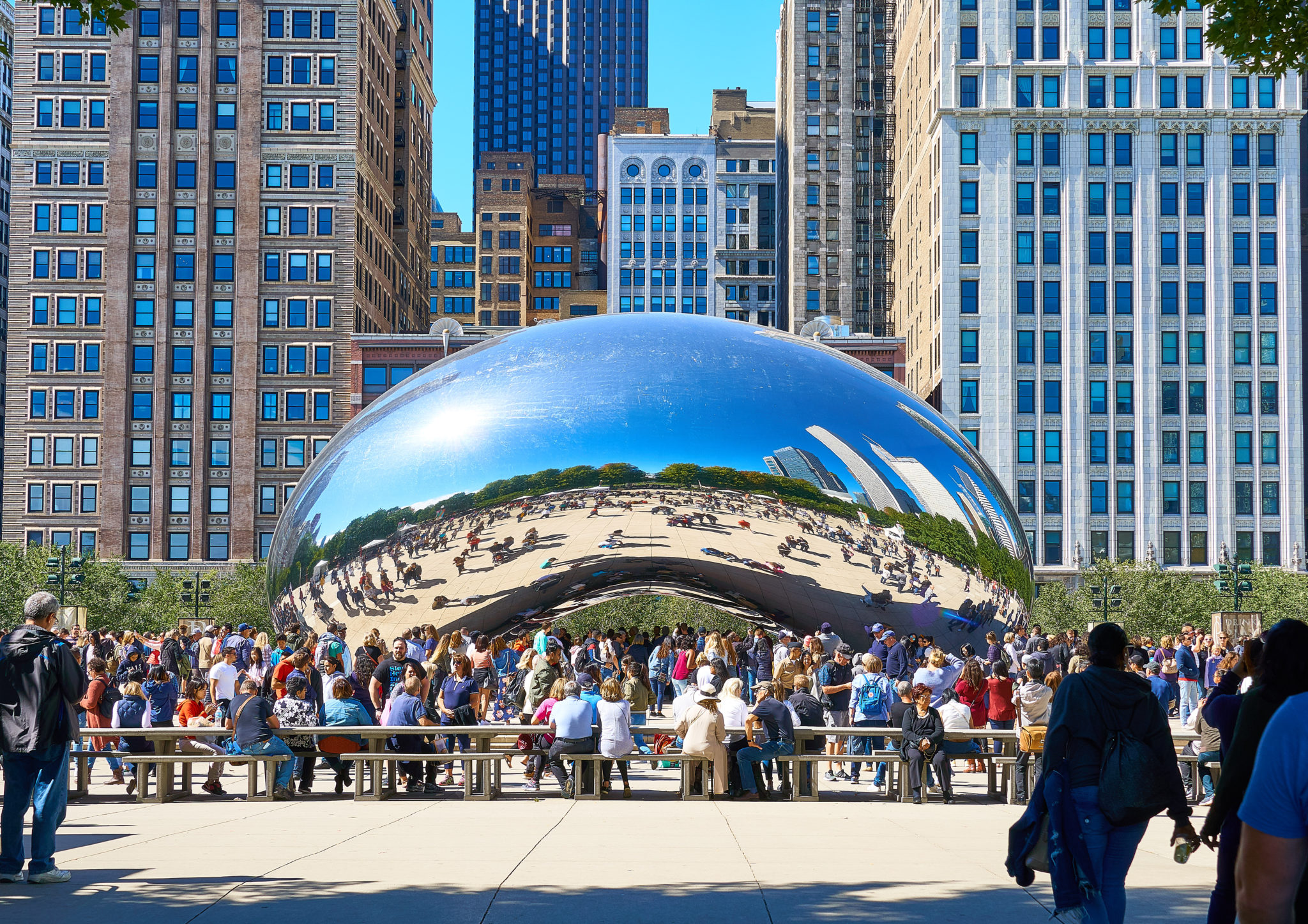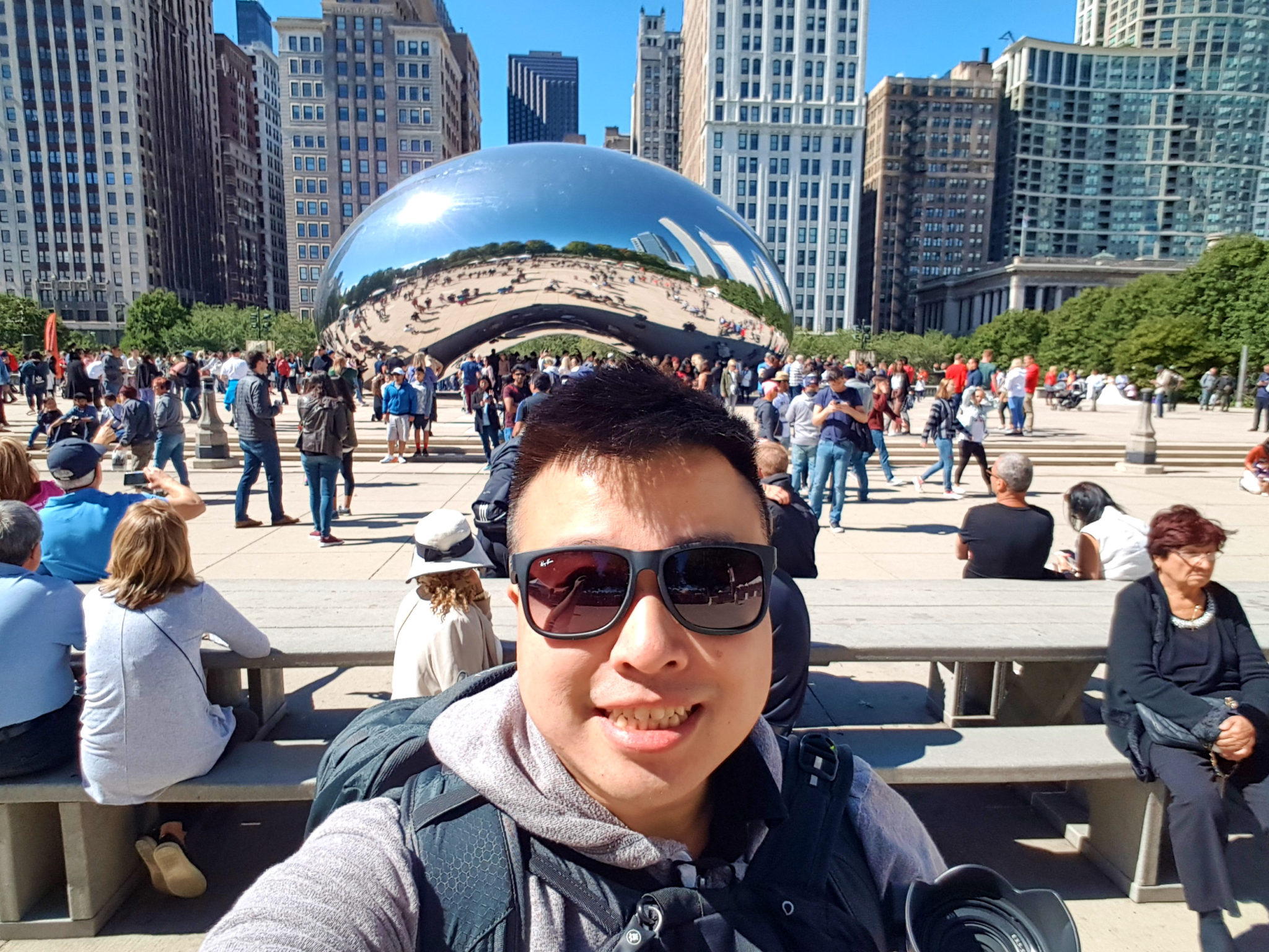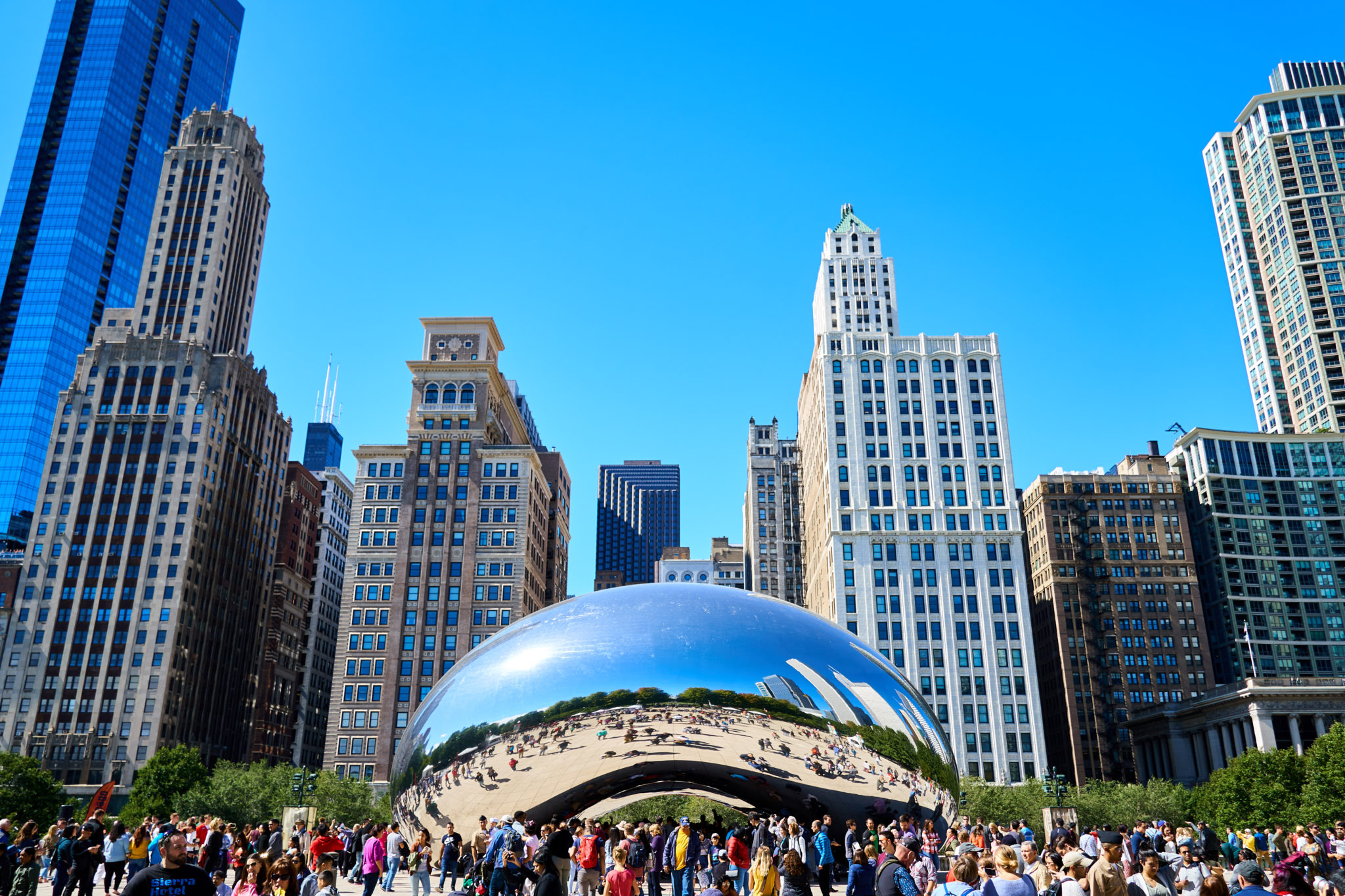 I spent a bit of time walking around the amphitheatre. This is one of my favourite places to relax, and appreciate the Chicago skyline and nature at the same time. I then moved onto two recognizable Chicago Landmarks, Cloud Gate and the Crown fountain. I’d already seen them before, but they’re both still fascinating and interesting to me. I first visited Cloud Gate.