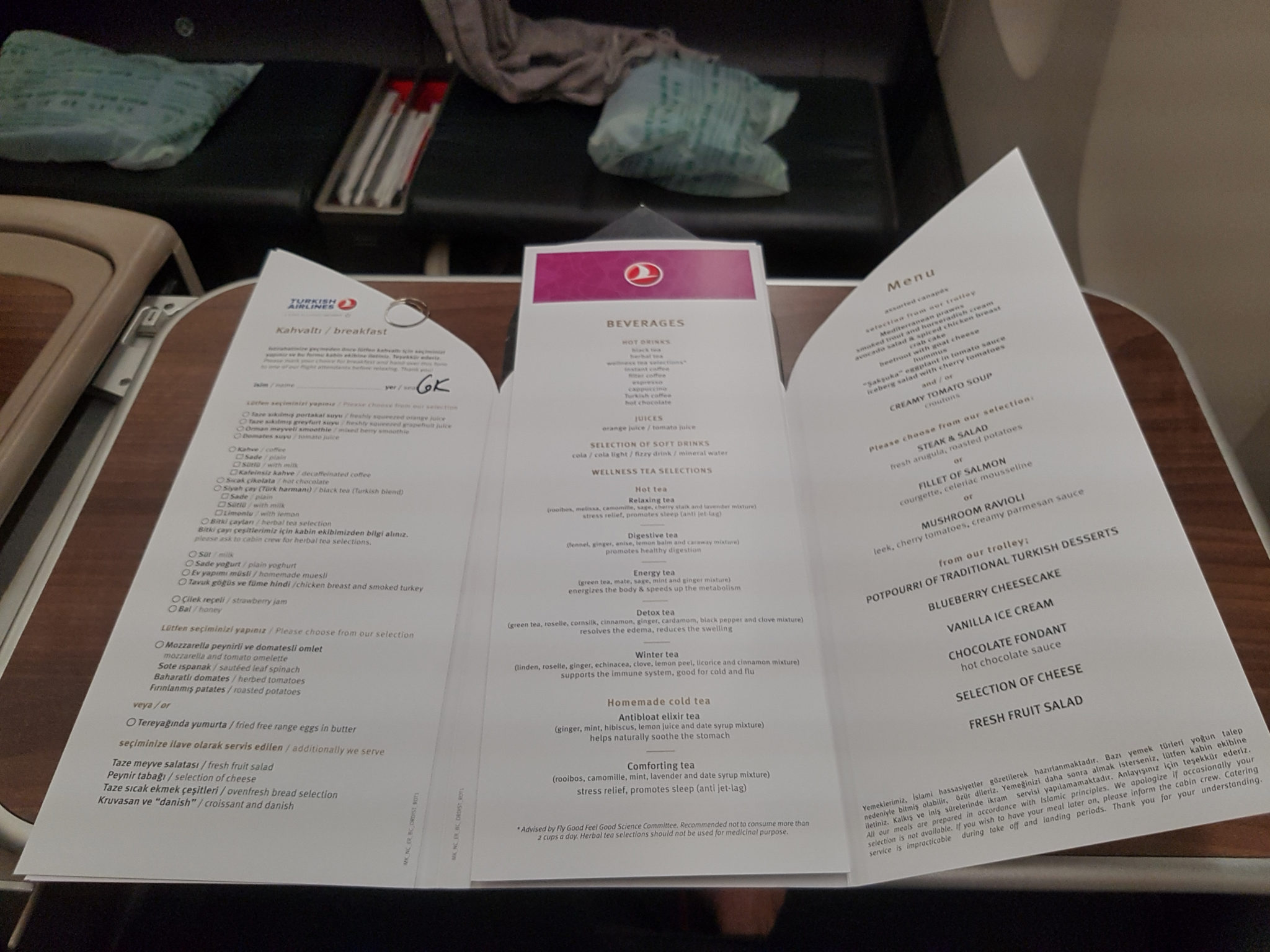 After dinner it was time to sleep! I was very tired by this time and was looking forward to getting a few hours of sleep. The flight attendant came by to “make our beds” and before I knew it I was off to dream land! I was en route to Turkey and the adventure was about the begin!