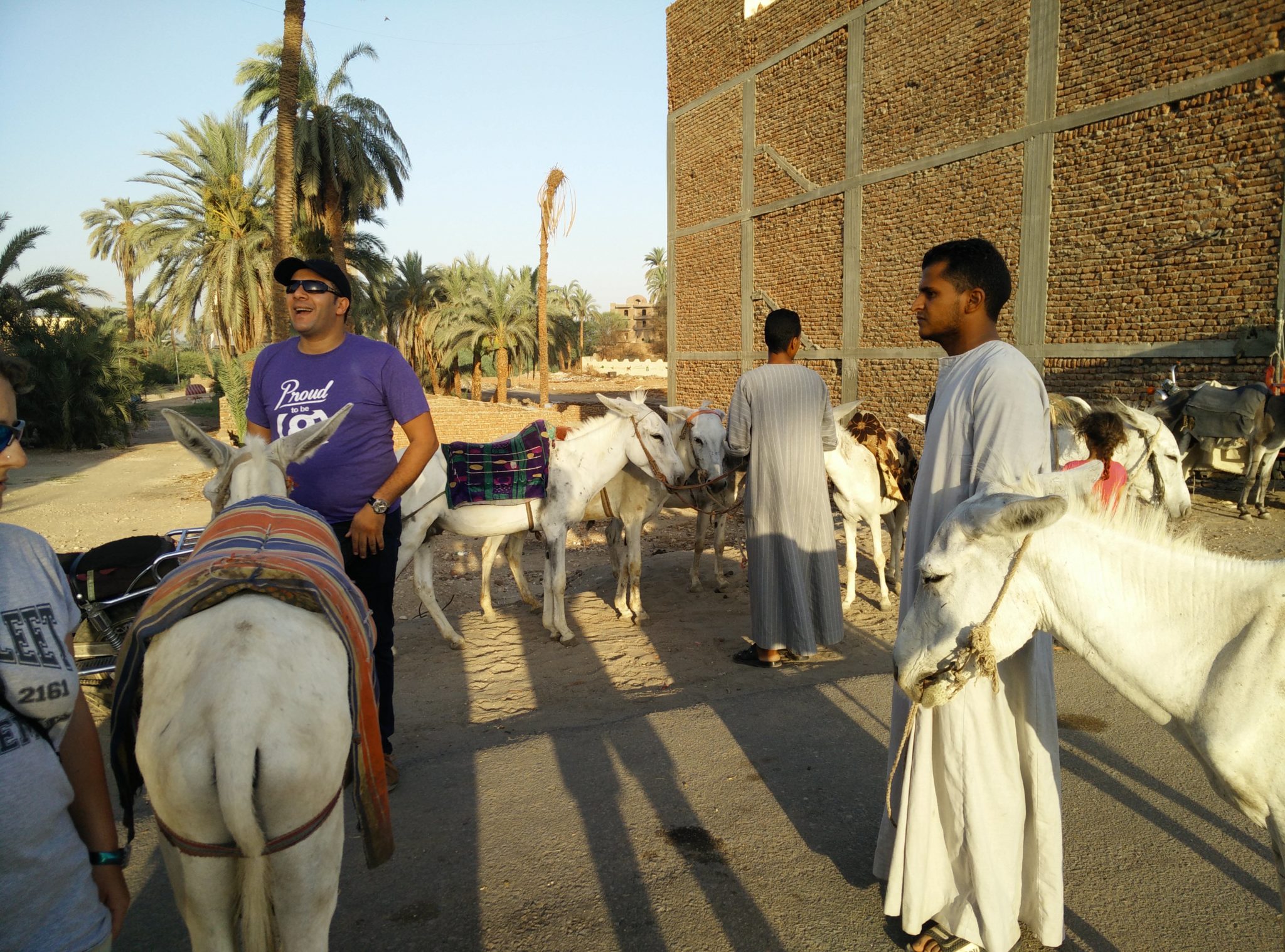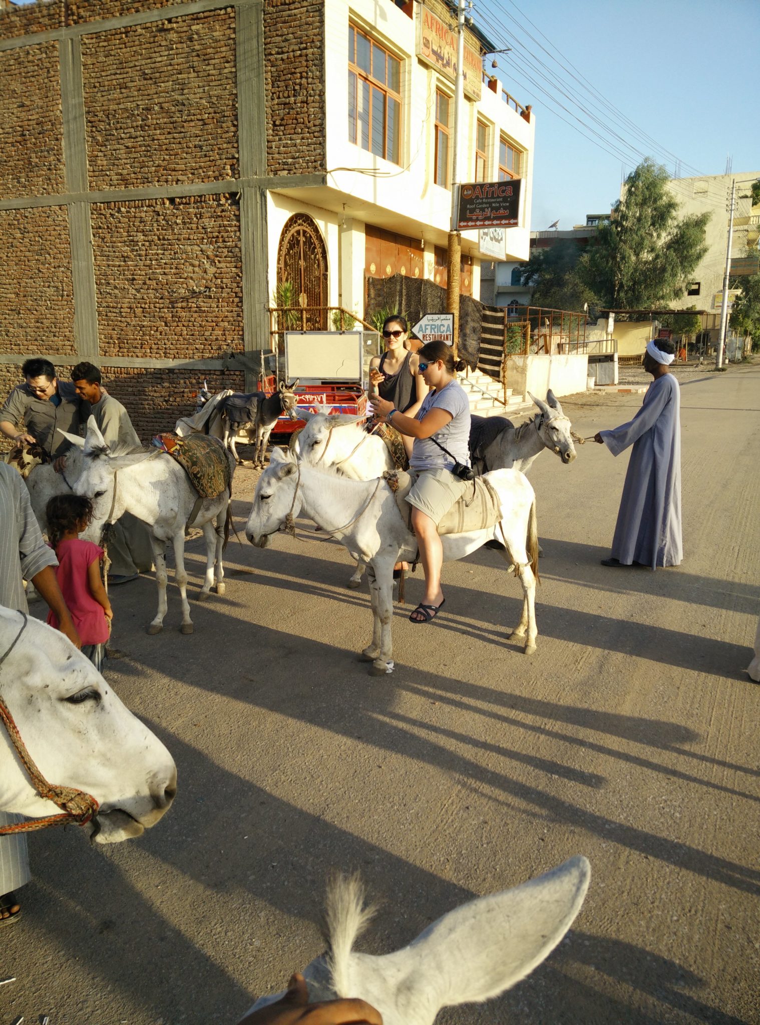 We woke up early again today, we wanted to beat the midday heat again so we set off early to cross the Nile to the west bank of Luxor. We hopped in a water taxi to cross and caught some great views of the Luxor water front early in the morning. To get up a hill and closer to where we would meet our bus, Mudi had arranged for us to try riding donkeys, It wasn’t very different from riding a camel, I guess they were a little more “disobedient” as I recall mine attempted to stop on the side of the road to eat some grass. Otherwise it was a neat way to see how some Egyptians get around (even today!)