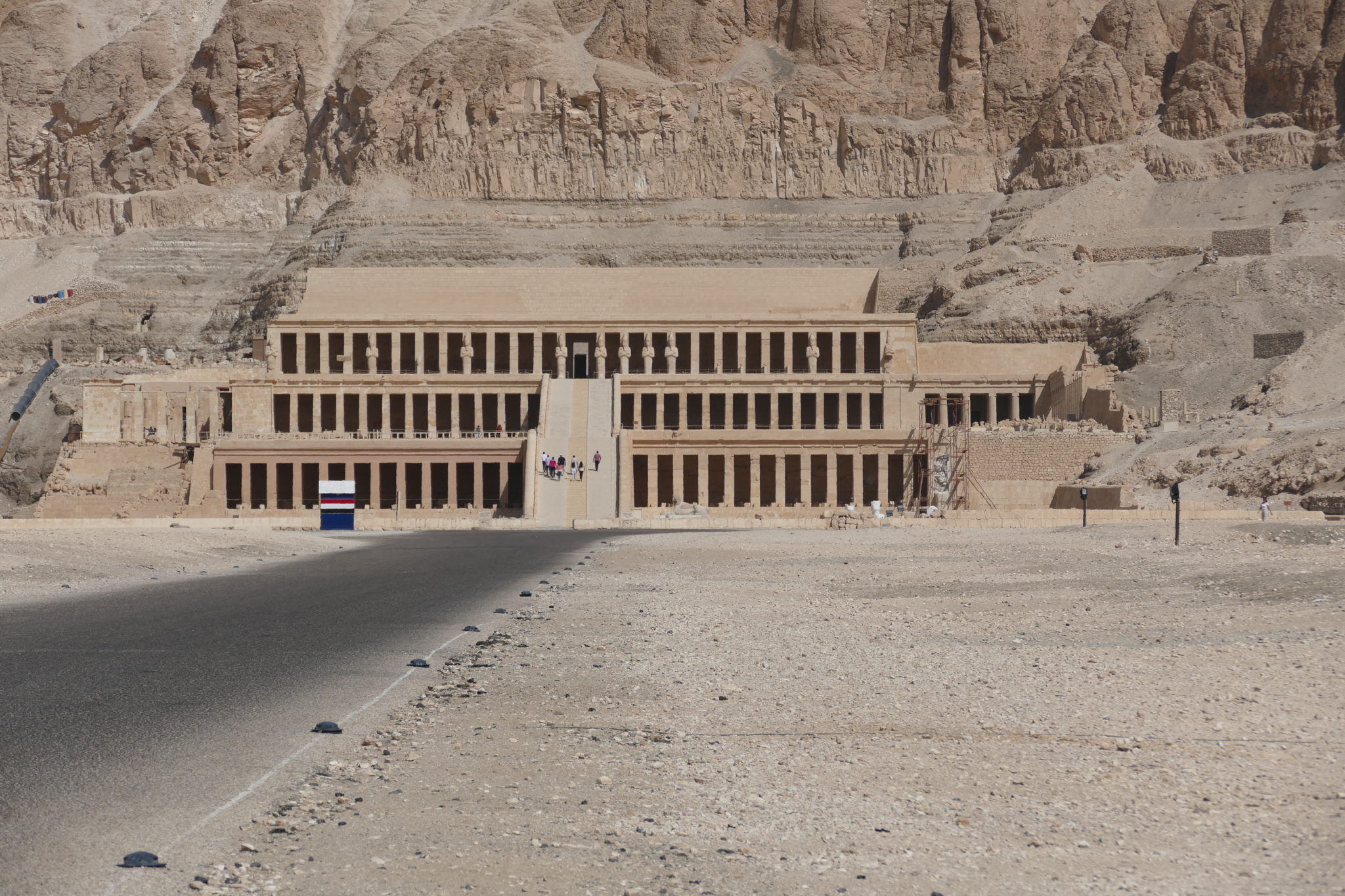We made our way to the nearby temple for Queen Hatshepsut. This was a temple also carved into the side of a mountain, with amazing pillar work and symtrey. We spent a little over an hour exploring this beautiful temple dedicated to the only female ruler Egypt had. She was adored by her people and the temple had been rebuilt partially after being torn down. Sadly though the heat was getting to all of us and there was little shade available, so we hurried back to our air conditioned bus for our next stop, lunch with a local Luxor family.