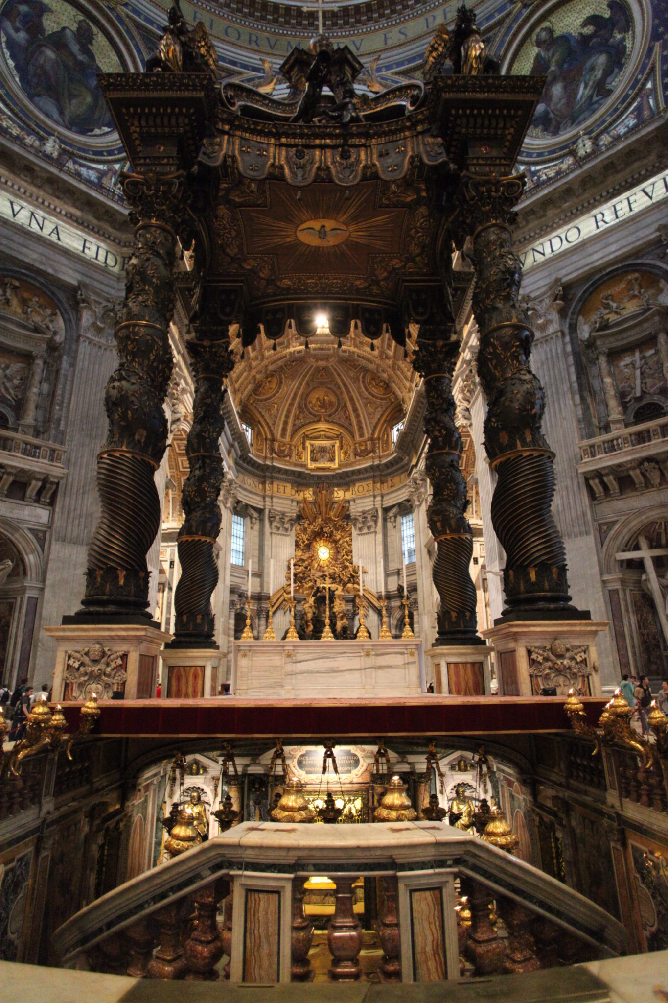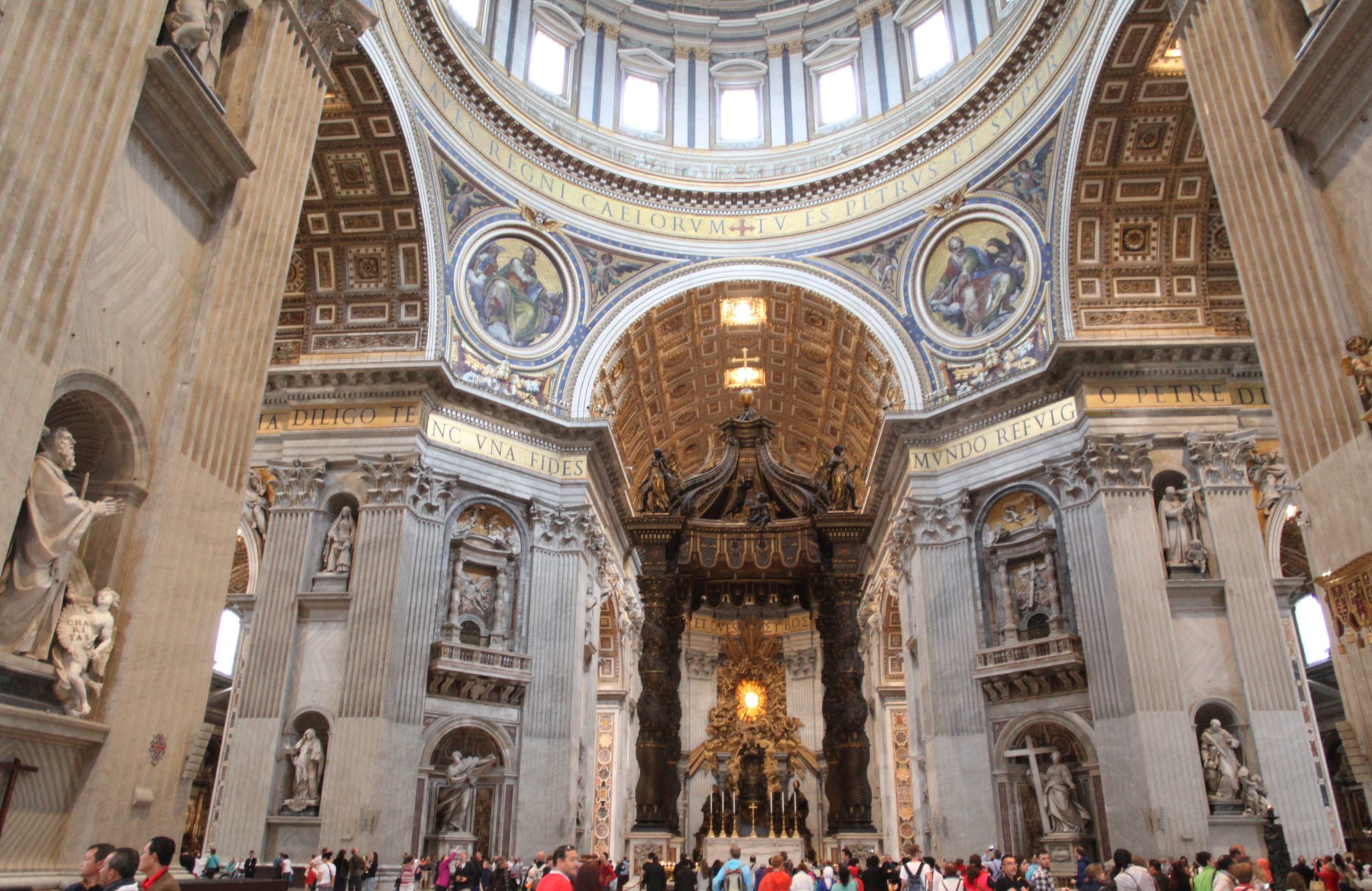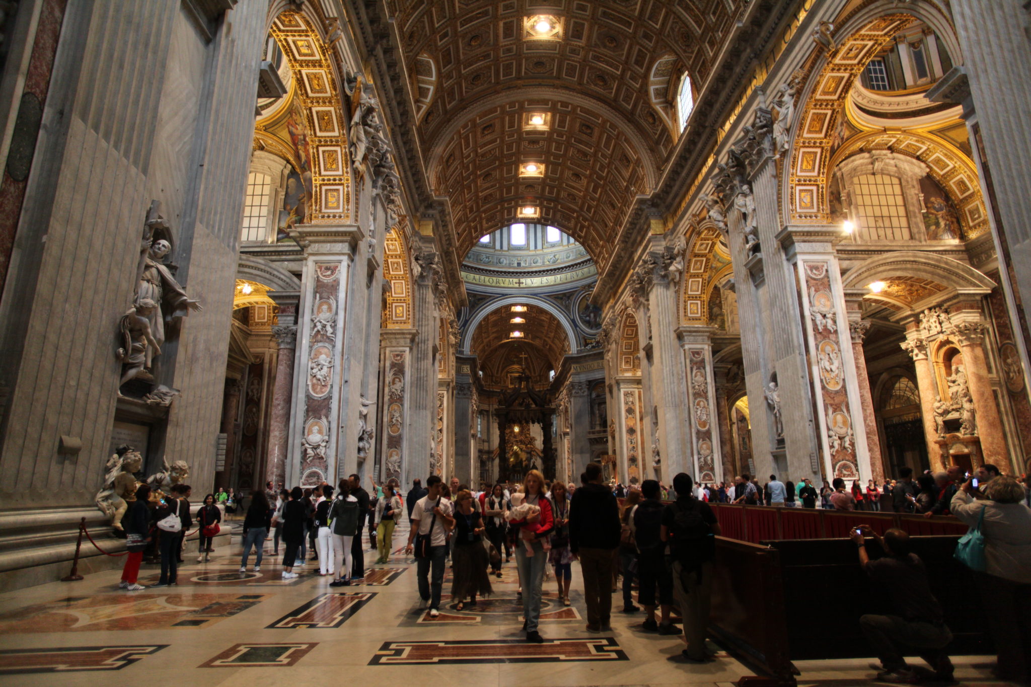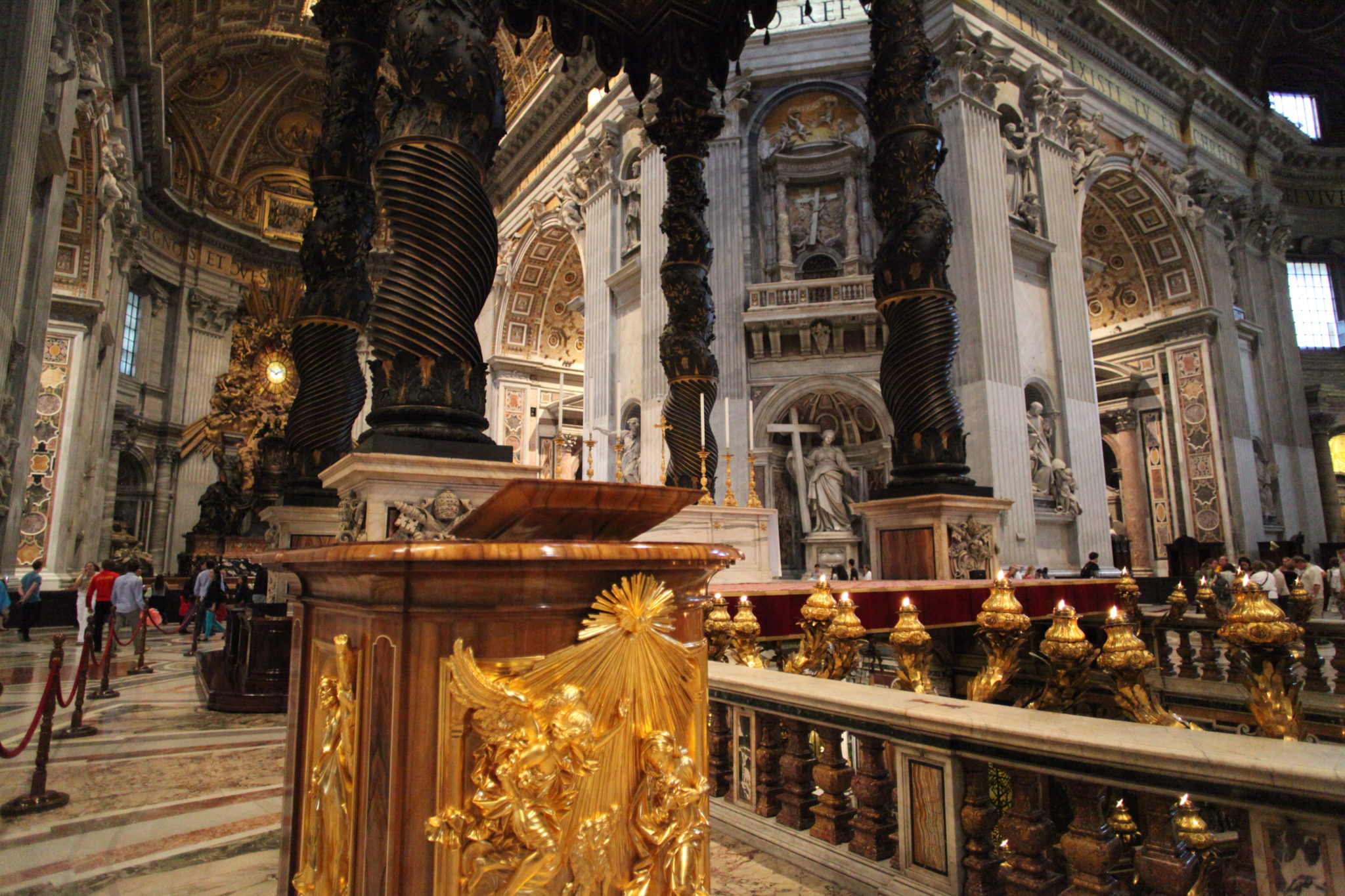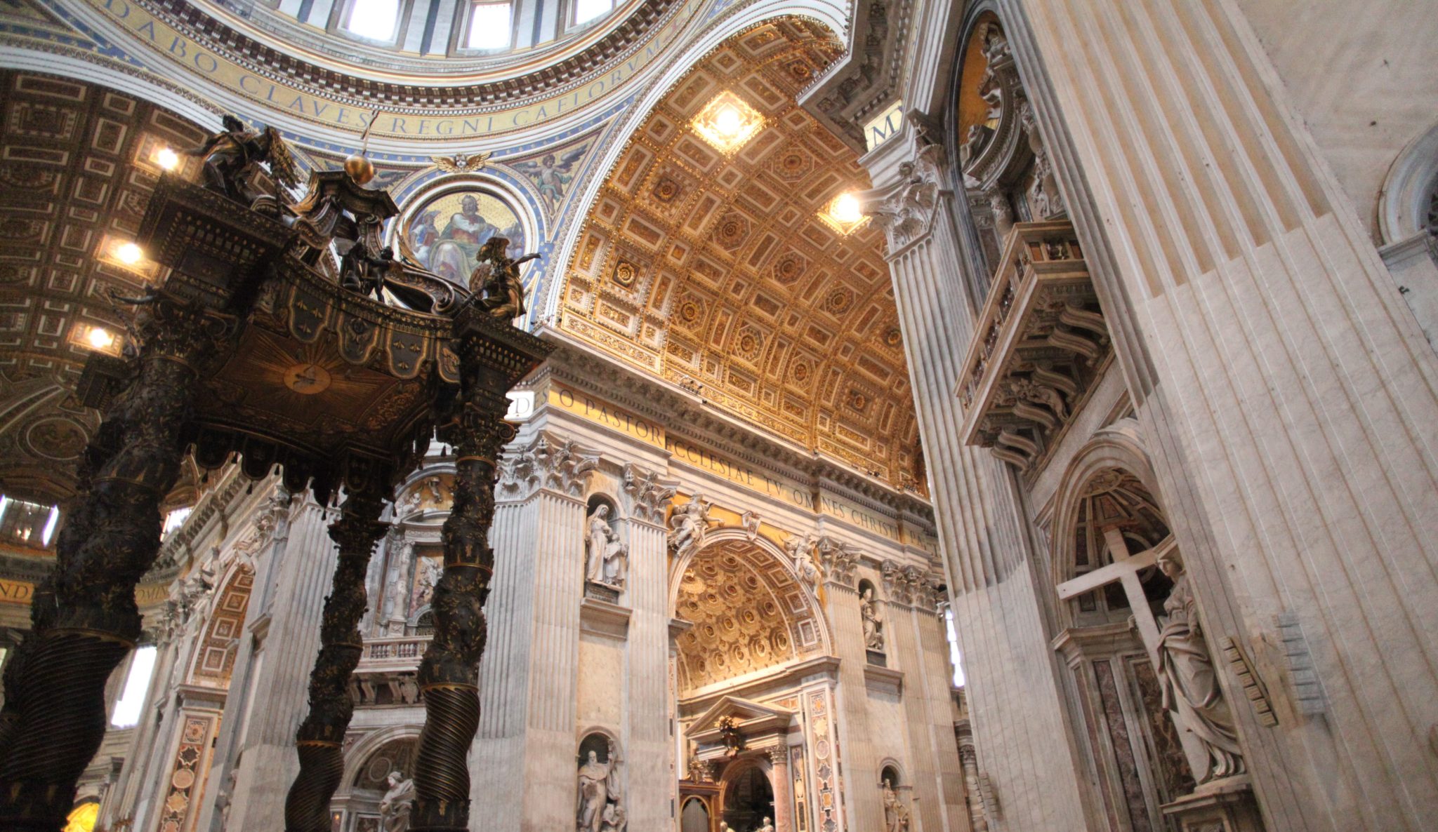 Once I got through the main doors of St. Peter’s basilica I was blown away. Its really hard to describe how large, grand and magnificent this building is. The size of it is huge! I’ve been to many cathedrals in my travels and nothing compares to this. Next the amount of art and grandeur is equally as amazing. There is gold, sculptures of key religious figures and ornate areas of worship everywhere! I’m not sure how to really put into words what this place looks like, other than to say that if you haven’t visited you need to. Its a humbling experience to come into a place that so much human effort is put into a place of worship.