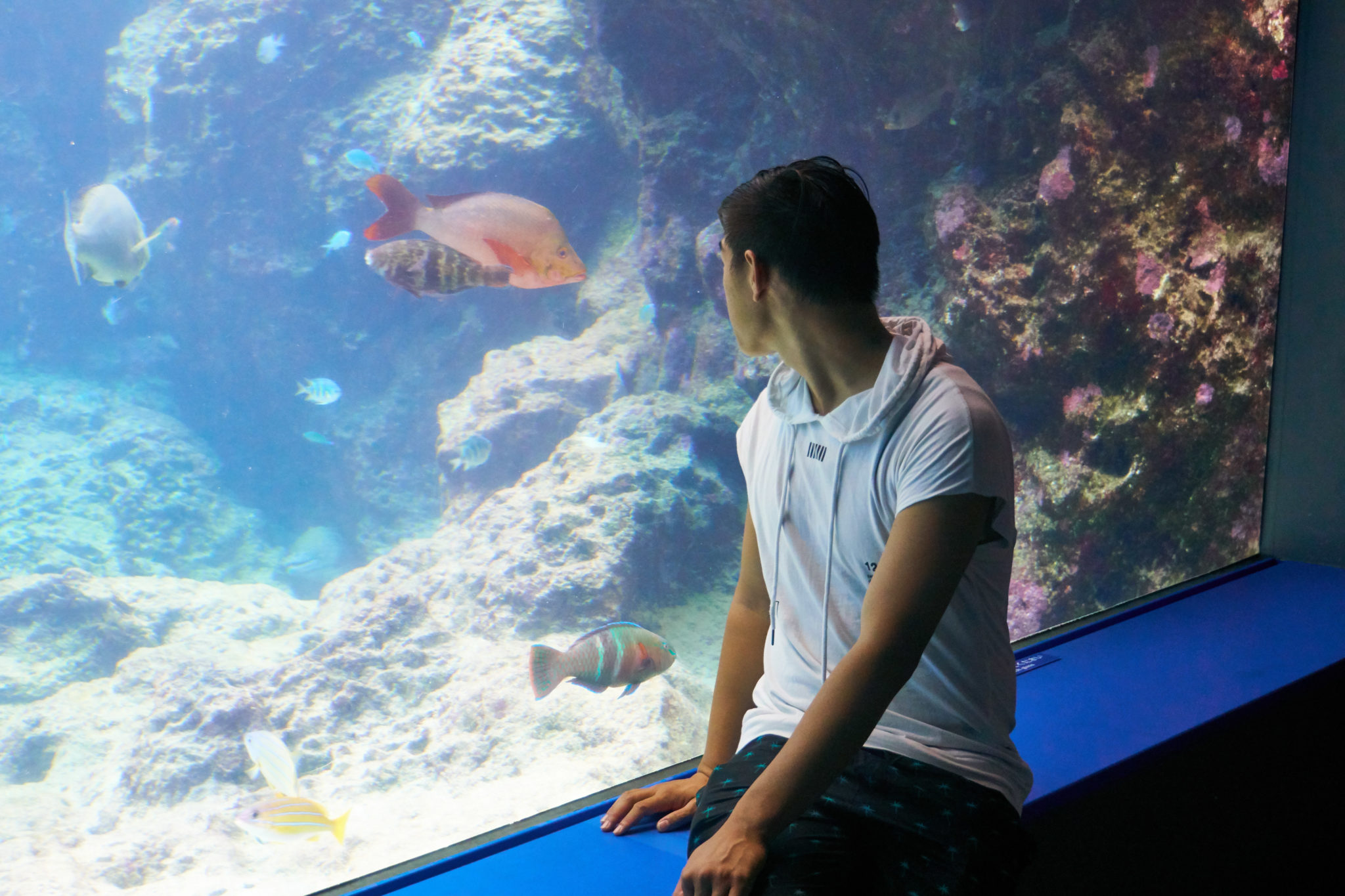 By the time we got back to ground level and to the main tank, it was nearly empty. It was close to closing time but we had the perfect opportunity to snap a few photos without the crowds. This was something FunkyCat really wanted to do and I think the results ended up being pretty spectacular!