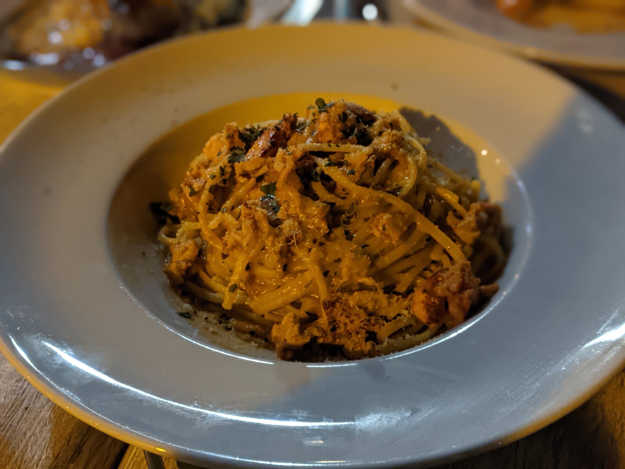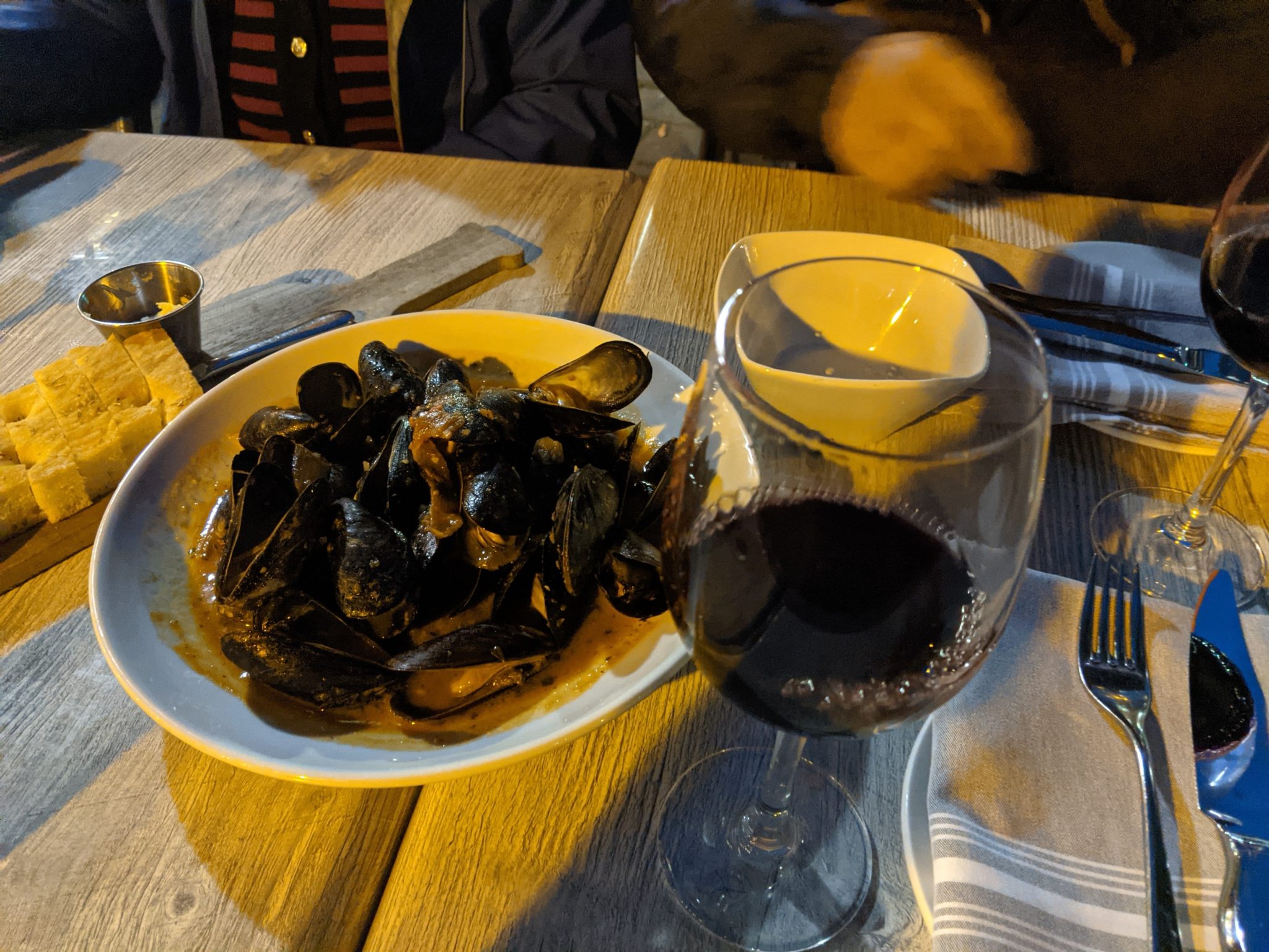 The Bicycle Thief is a cool waterside restaurant with a good selection of seafood on the menu. Obviously there’s a theme of bicycles, which makes for interesting decoration choices! We settle down with a nice bottle of wine and have our first seafood meal of the trip. I have a seafood pasta, Mama minion has fish and risotto and papa minion gets the surf and turf combo. All three meals taste great and it gives us great hope for future opportunities to stuff our faces.