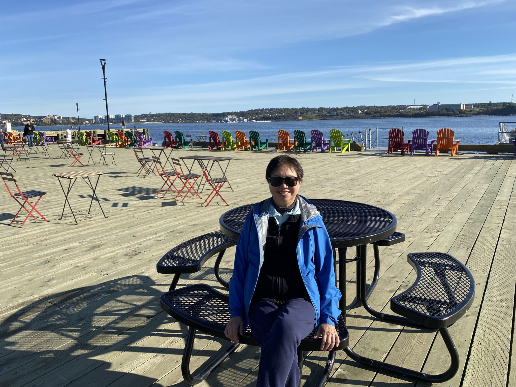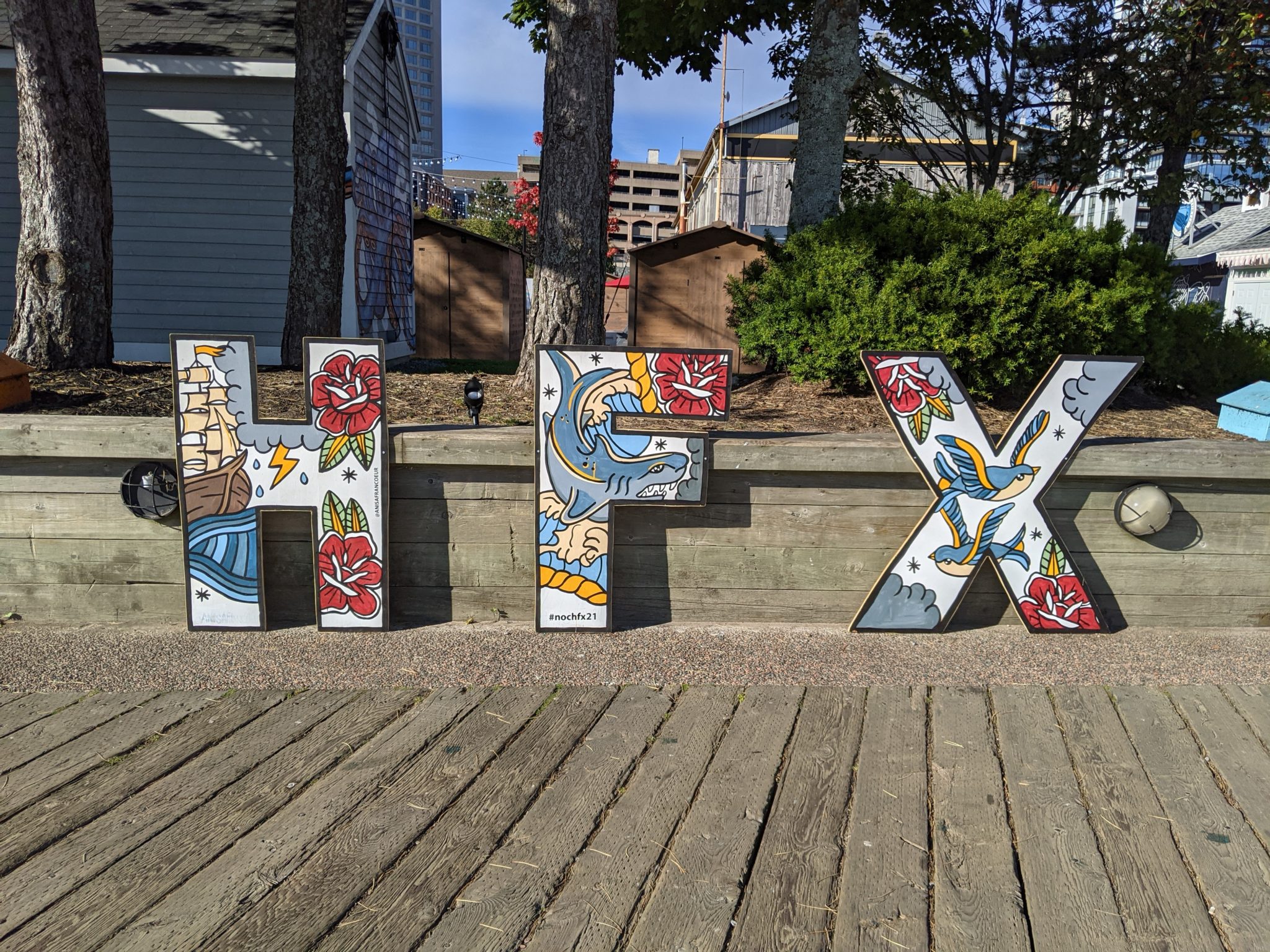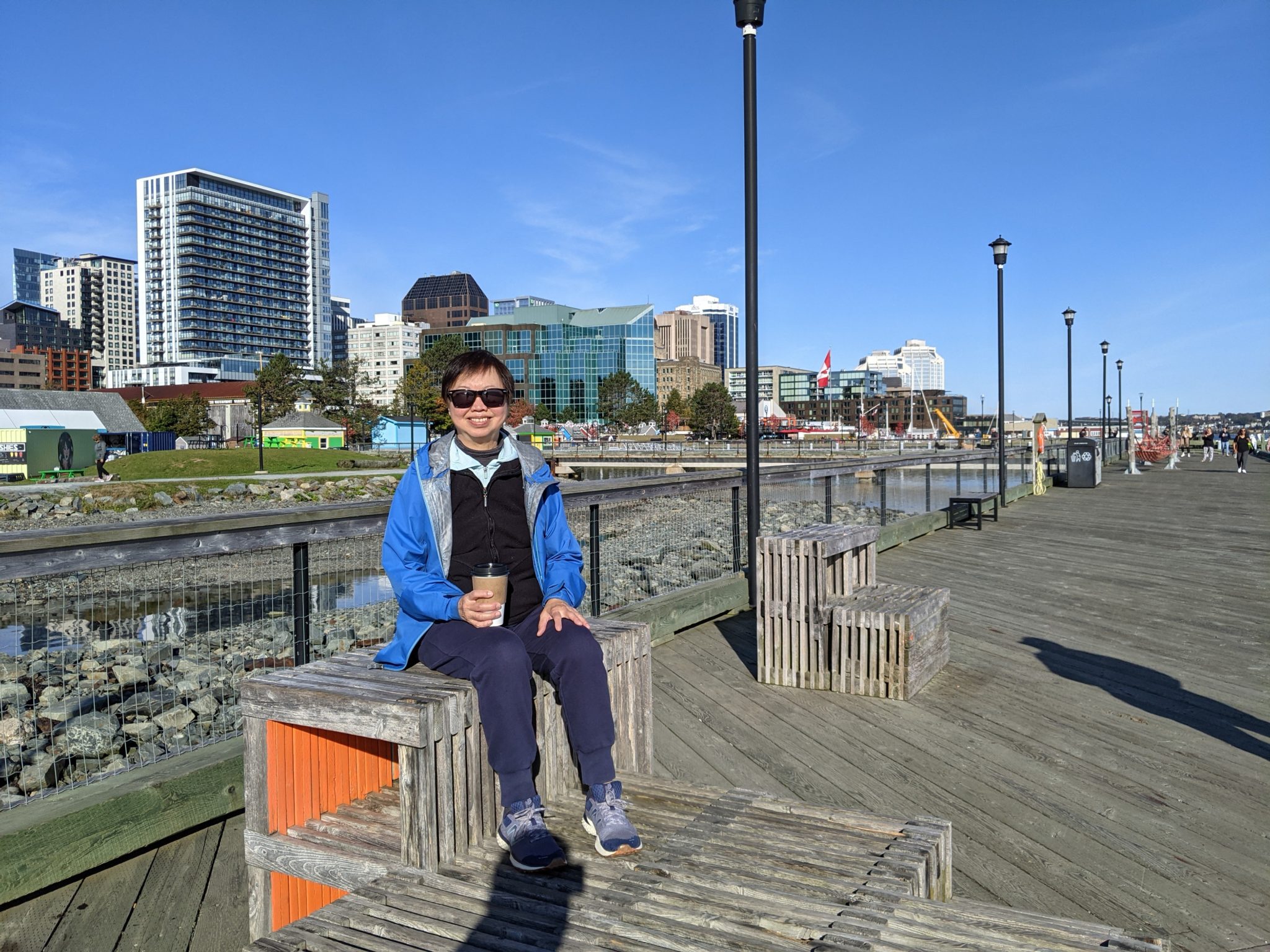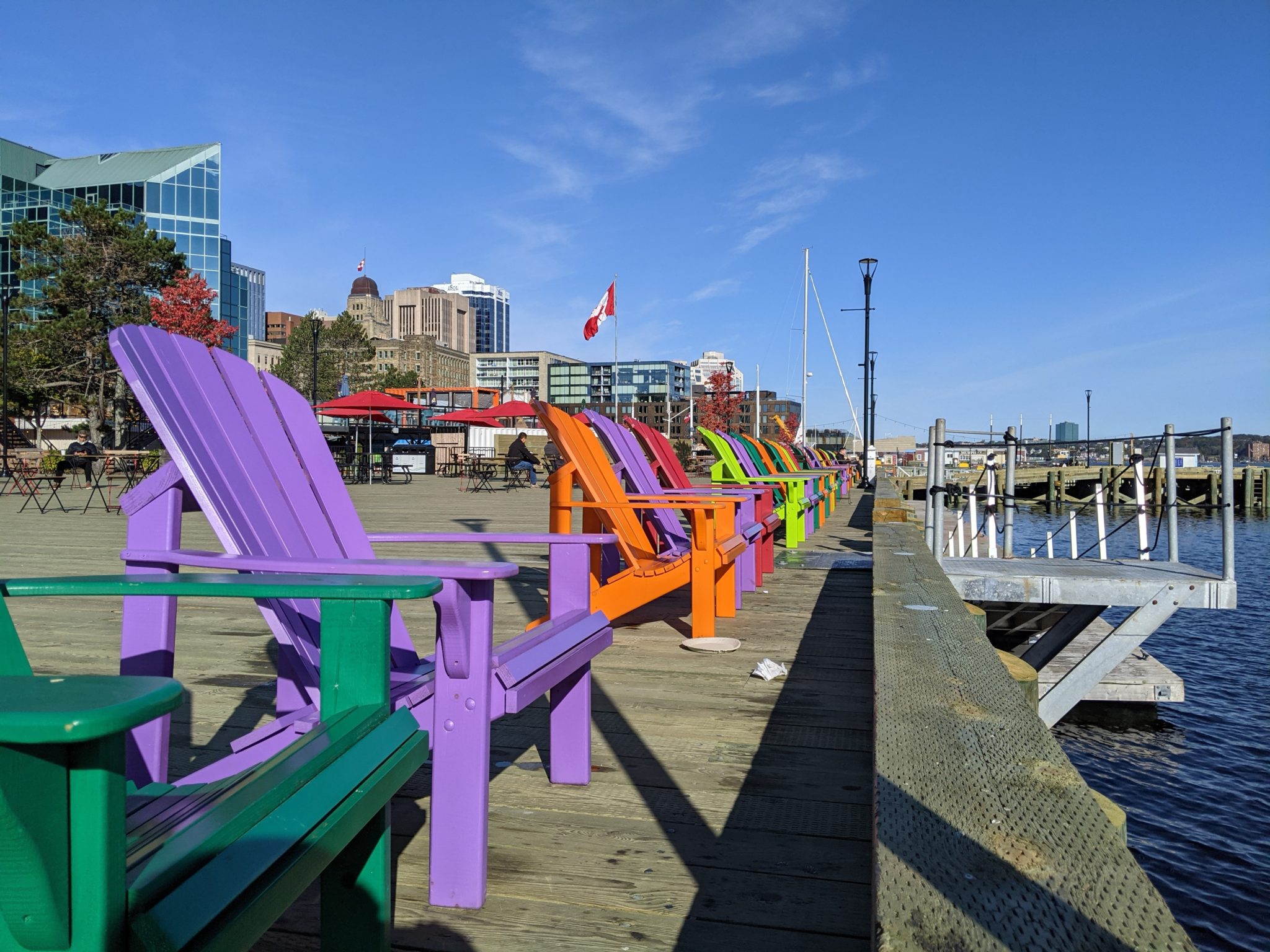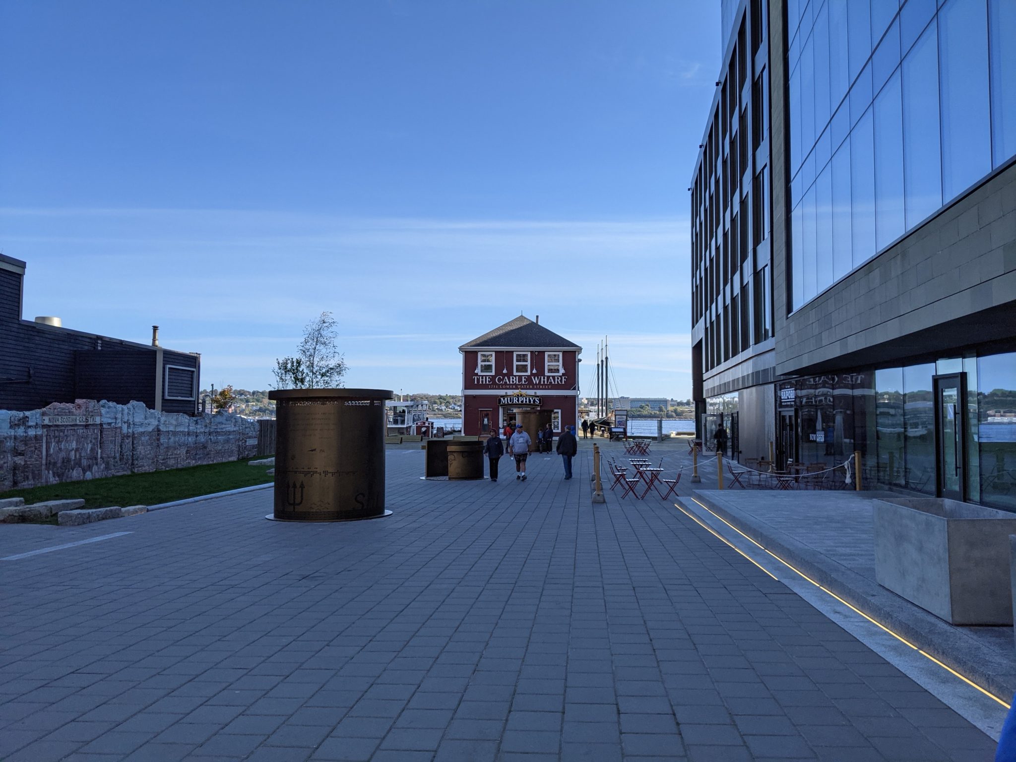 Because our Halifax in hotel wasn’t ready for our morning arrival, we ended up leaving our bags and venturing around Halifax. After a short walk we arrive at the waterfront which is a lovely well developed area. There is kilometers of waterfront to walk, full of shops, cool art, restaurants and places to sit and take in the view. It also didn’t hurt that this morning is a beautiful sunny day and we get to see it in all its beauty! As far as first impressions go, this one isn’t half bad!!