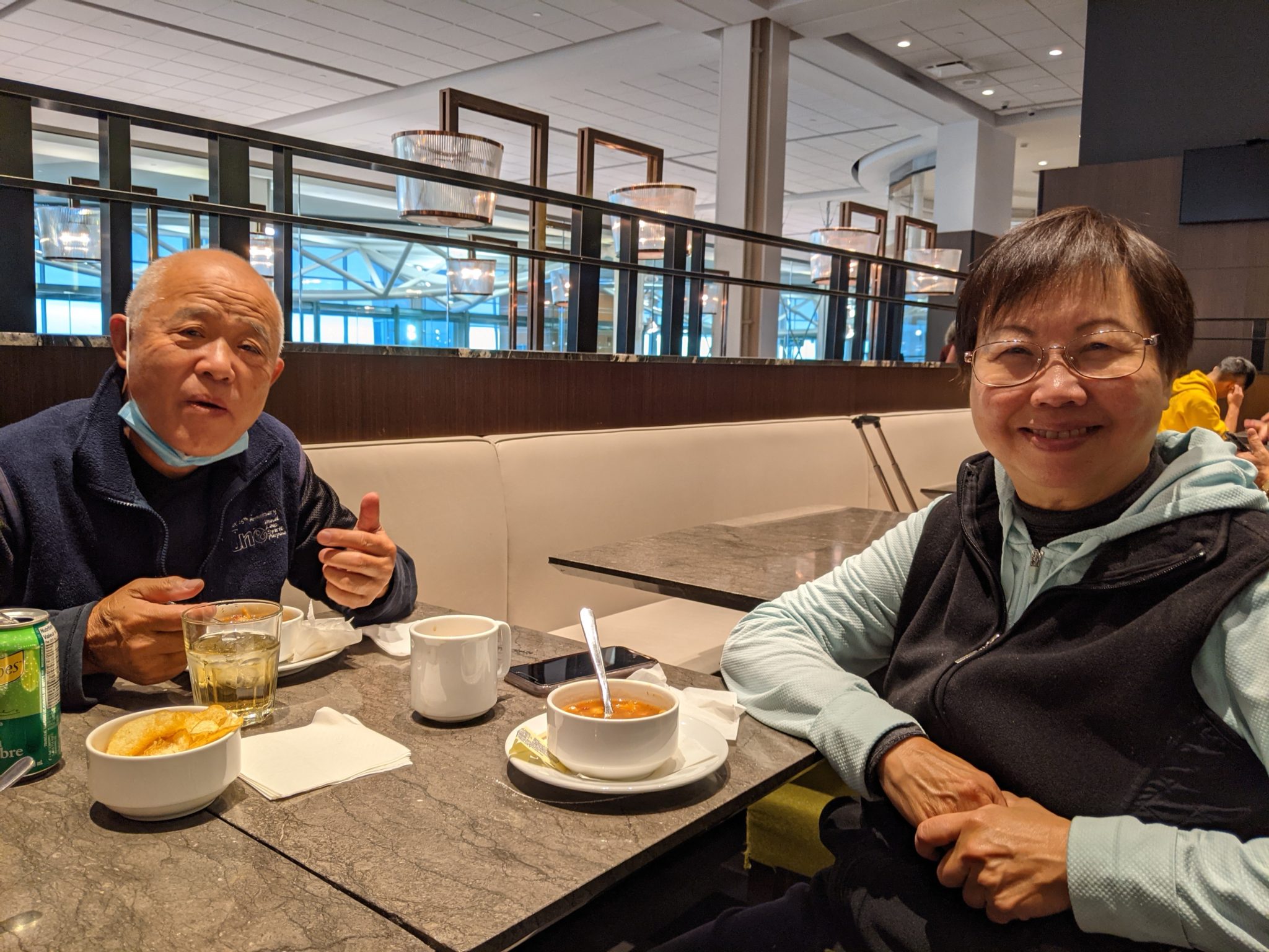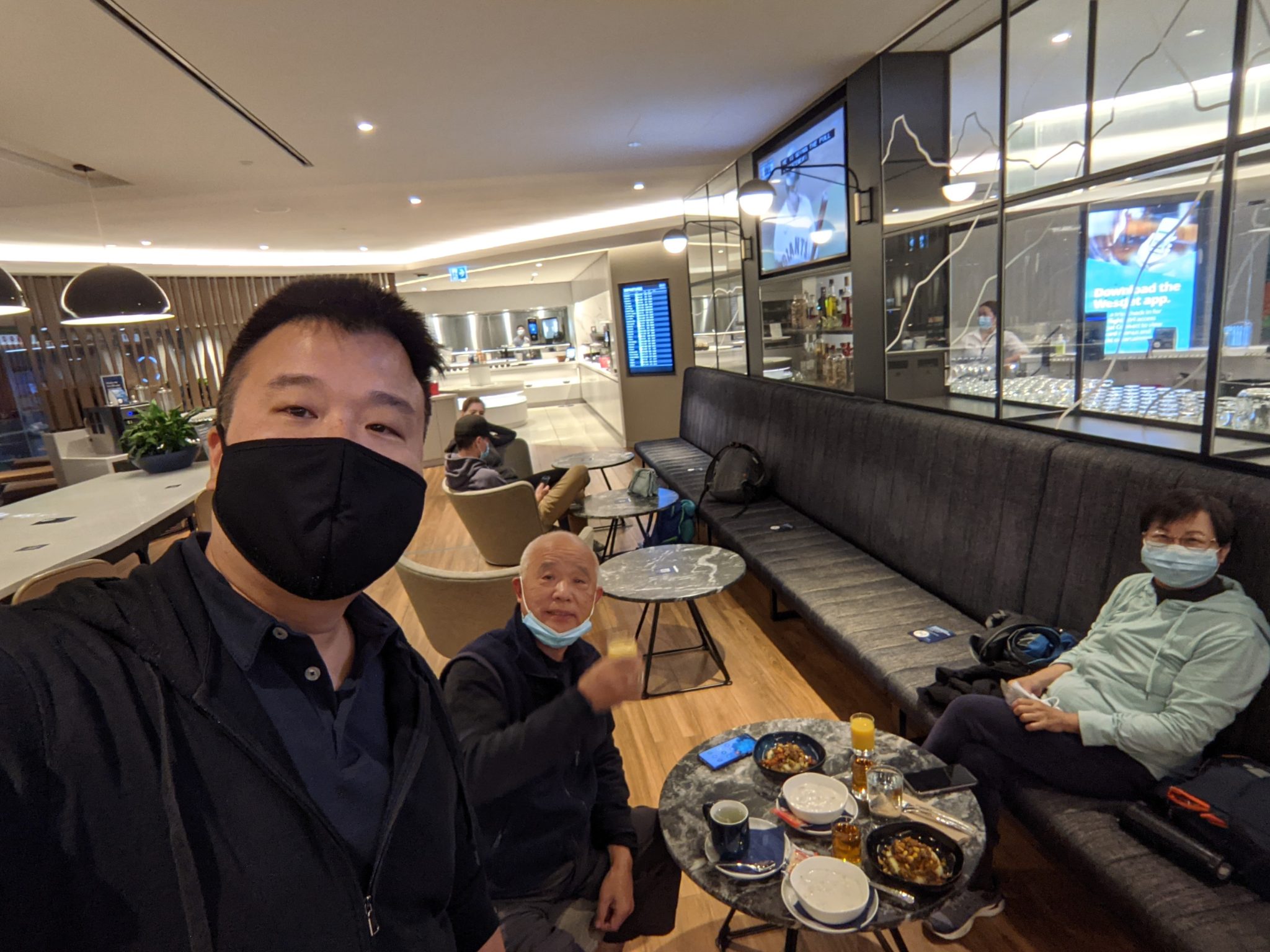 Unfortunately there are no direct flights to the East Coast. So we would need to make a short stop in Calgary before boarding an onward flight to Halifax. However, this also gives me a chance to introduce the parents to the world of airport lounges. Our first stop is the Plaza Premium lounge at Vancouver International Airport. While not the “fanciest” of lounges the parents were impressed nonetheless, especially by the free food and drink! In no time they were settled in and enjoying the more relaxed environment of waiting for your flight to begin boarding. Soon enough, its time for us to board our flight to Calgary. It’s a short one hour uneventful flight, but significant in that its the first plane any of us have been on in 2021!