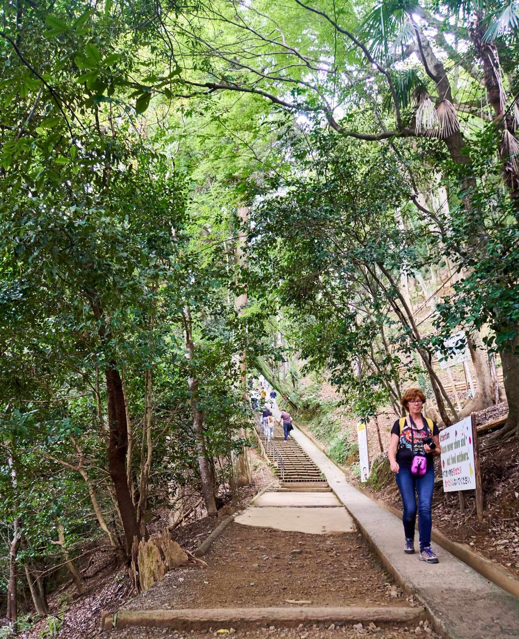 Shortly after crossing the bridge we arrived at the front gate for the Iwatayama Monkey Park. It costs 550 yen to get in, which we gladly paid. While I was excited to see monkeys, I didn’t realize that the monkey’s lived at the top of the mountain. This meant that there’d be a fair bit of physical exertion before we actually arrived where we needed to go. It’s a 30-45 minute uphill walk and by the time we got to the top, I was drenched in sweat!