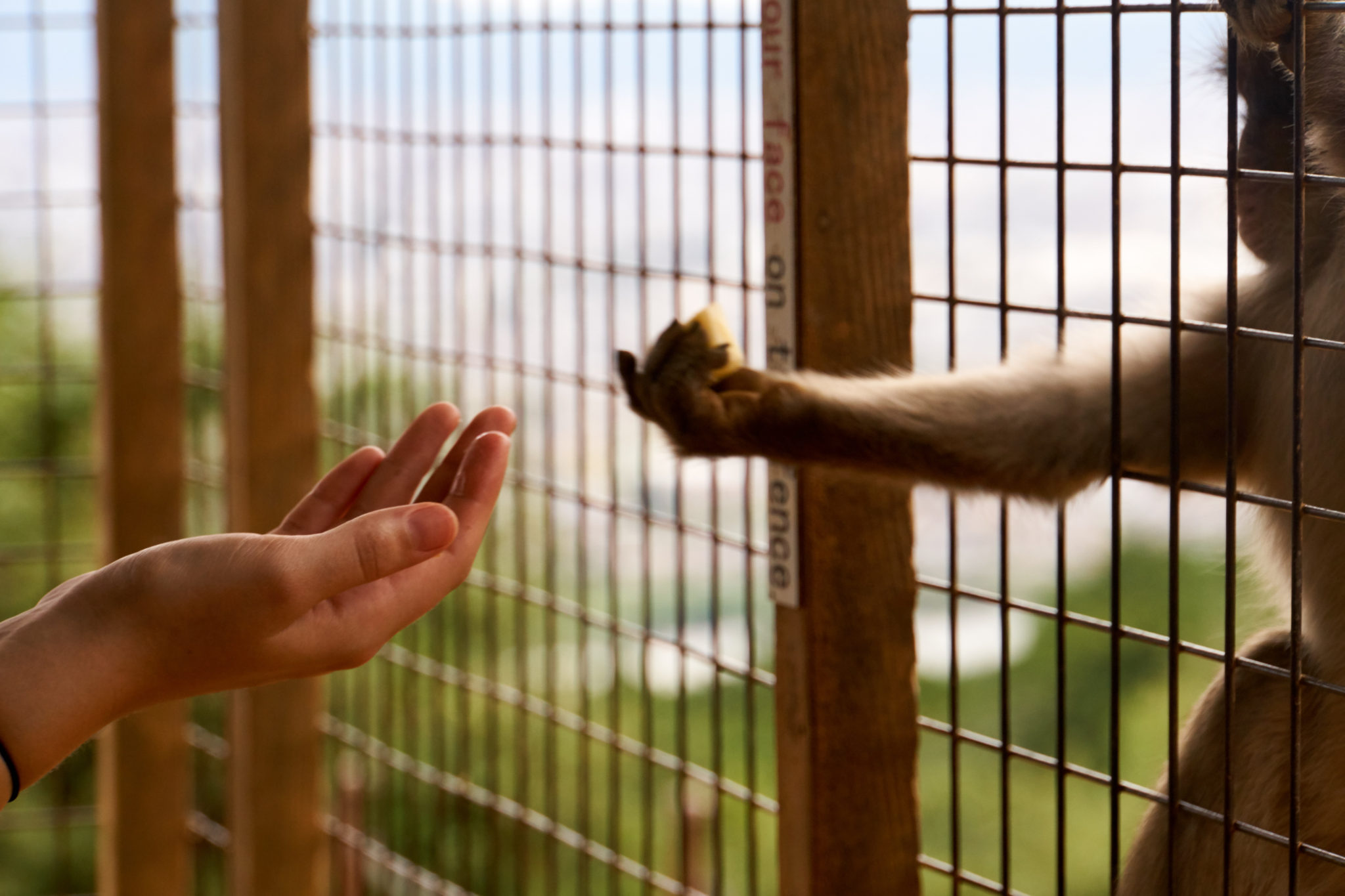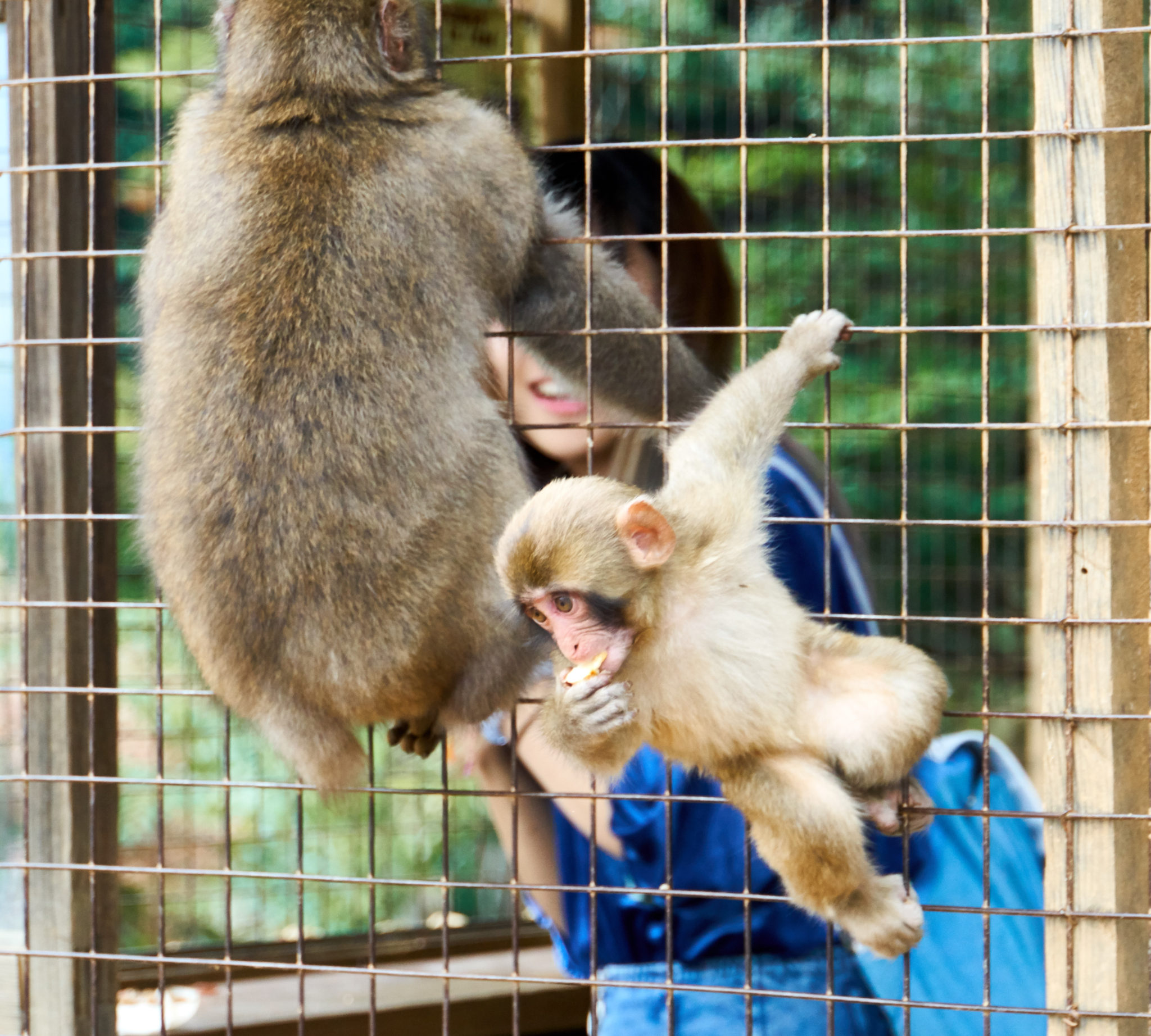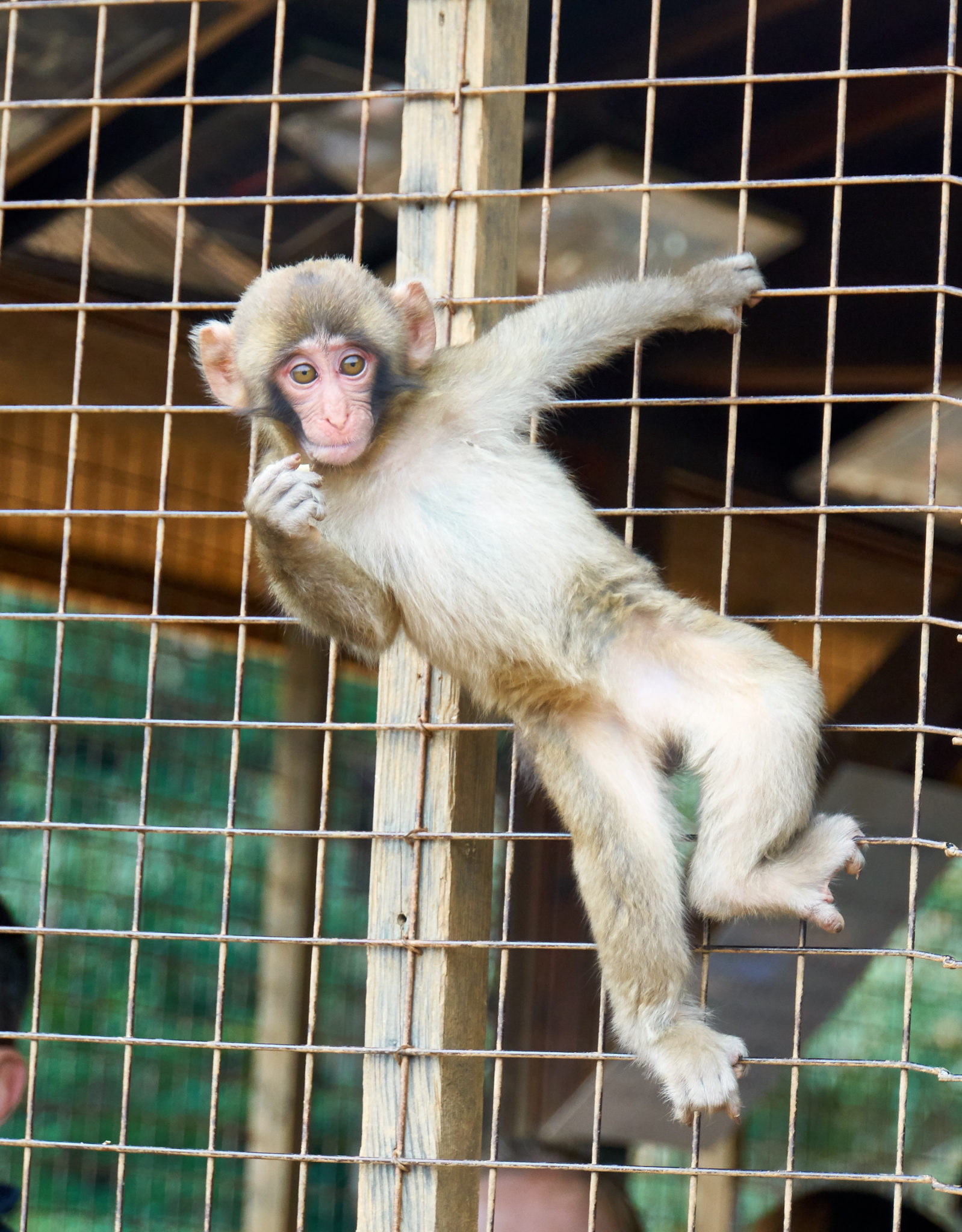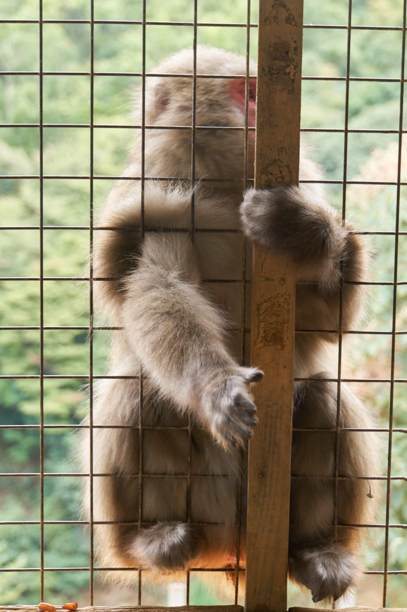 There was one area that was caged. There’s a building with caged open air windows for the humans to be inside. This was because the keepers would sell food that visitors could buy and feed the monkeys from inside. The cage was to keep the monkey’s from attacking anyone with food. Instead they would climb onto the cages and reach their hands in allowing you to hand them food. It was actually pretty cool to see both from the inside and out.