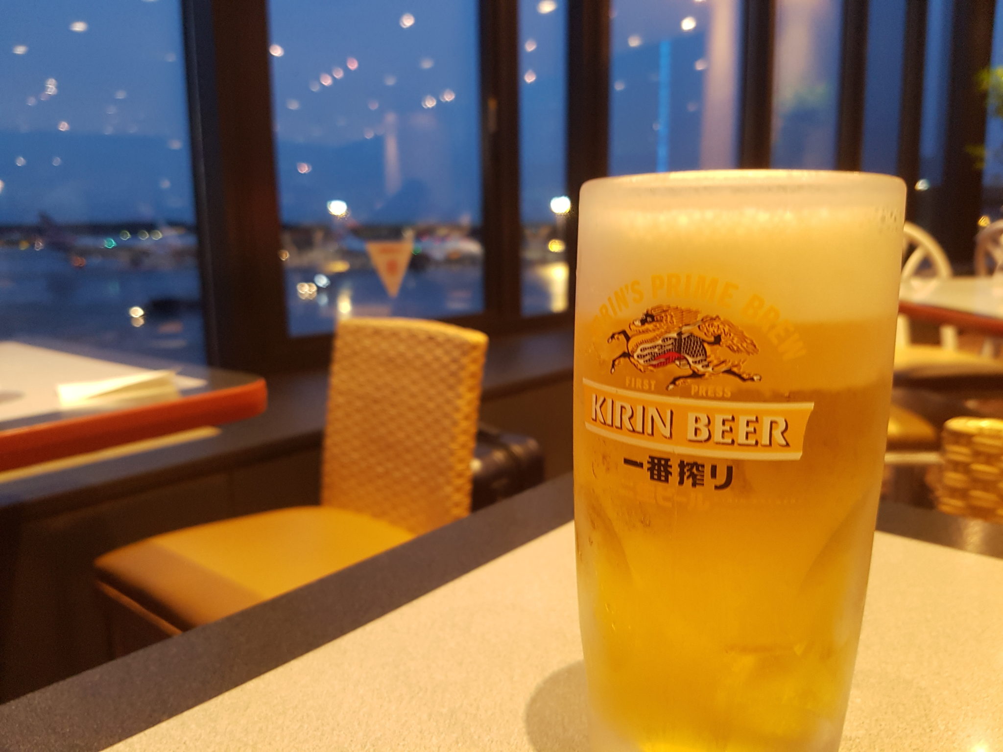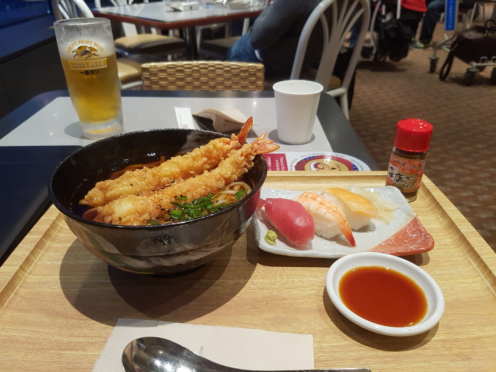 Our trio would all be going our separate ways today. Salmonella left early (after saying goodbye) in order to attend the church he had gone to while living in Osaka. Meanwhile FunkyCat and I headed to the Osaka Shinkansen station where he stored most of his bags and I caught the airport shuttle to Itami Airport. From here, it was a short 1 hour flight to Narita Airport. I stopped into one of the airport restaurants to try and get one last meal before leaving Japan. I opted for a nice pint of beer and tempura udon.