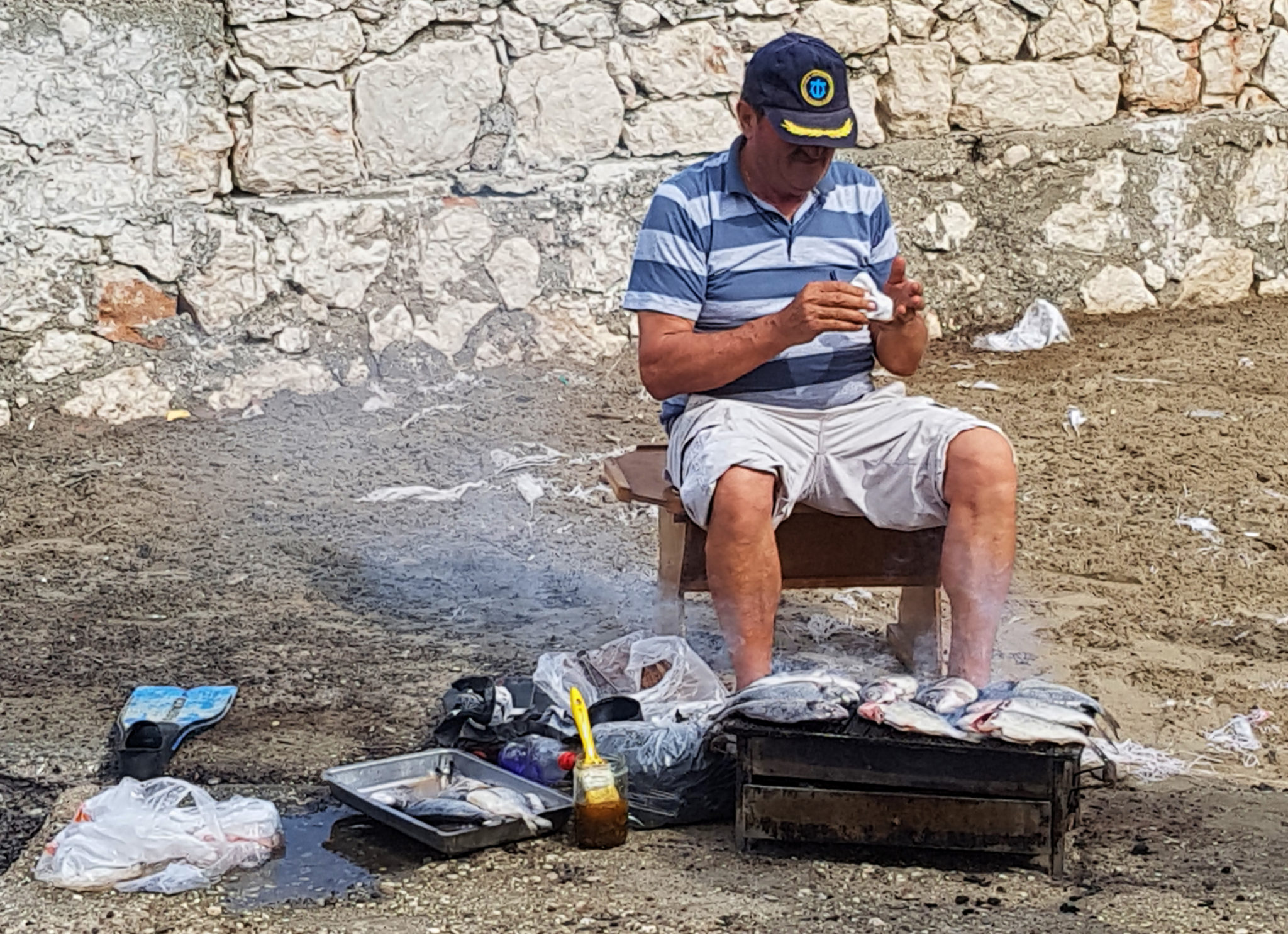 Grilled Fish on a boat