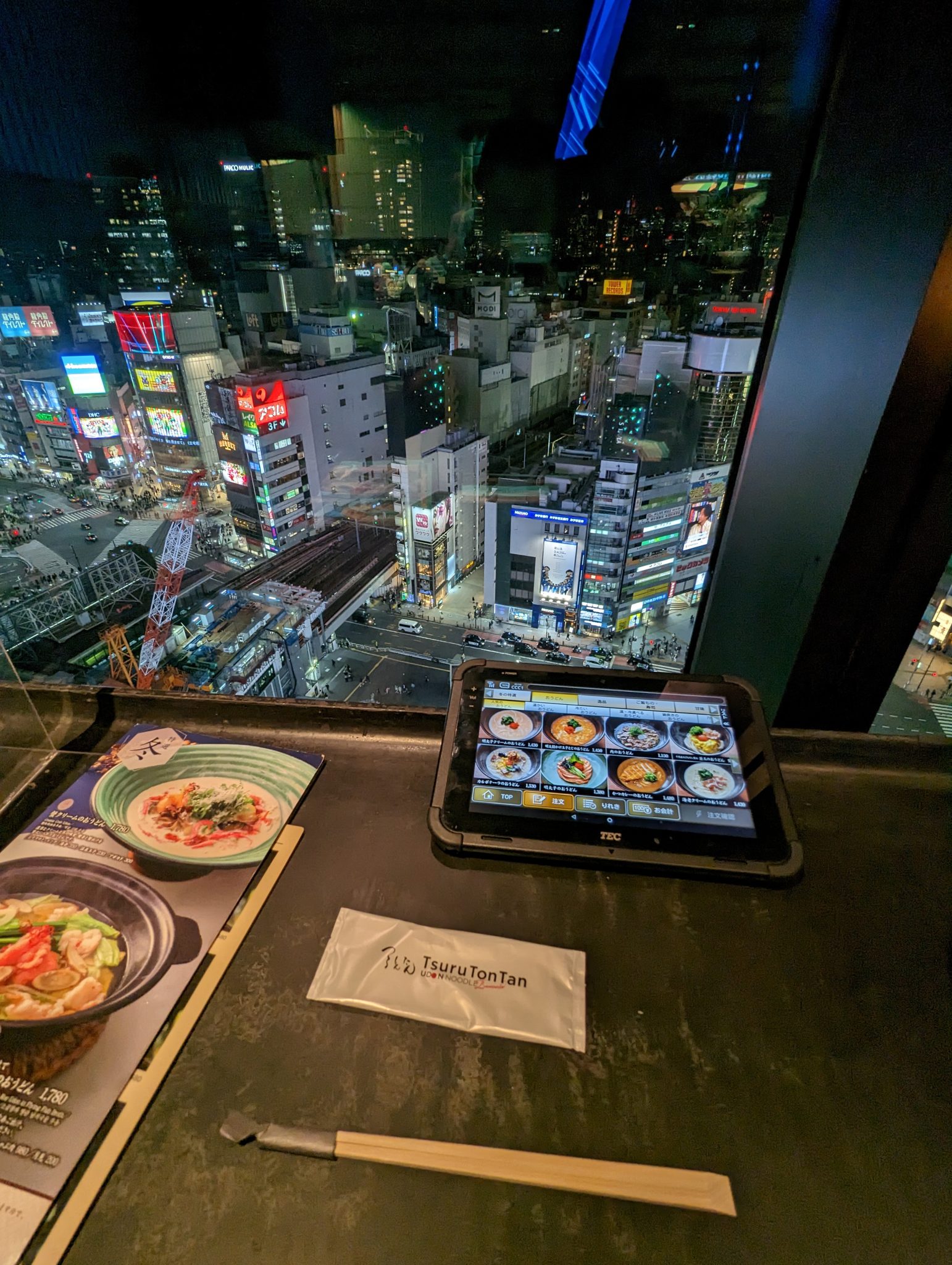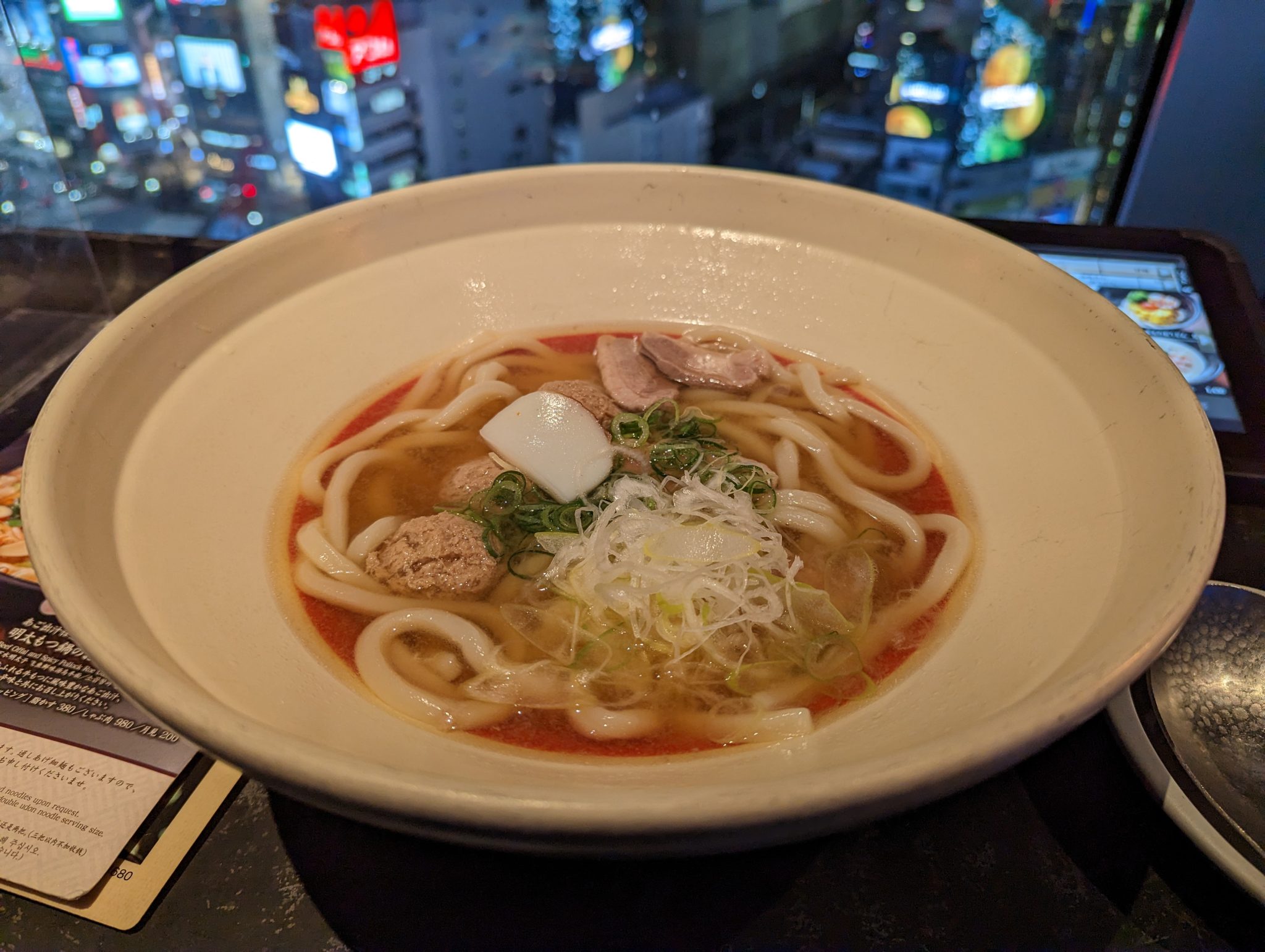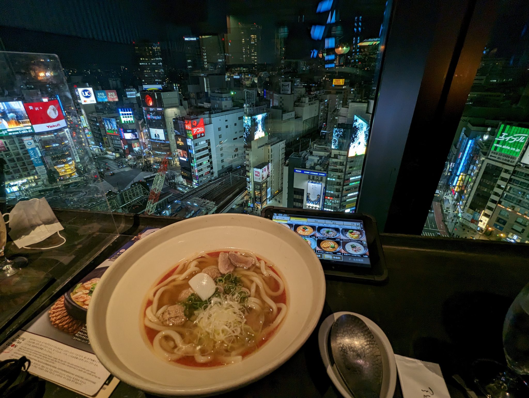 By the time I wake up its well into the evening and my thought is to find something to eat. I didn’t need to go very far, since I end up at Tsurutontan Udon in the Shibuya Scramble building right beside my hotel. This restaurant is situated on the 14th floor of the Scramble building. I am lucky enough to get there when the line to get in isn’t that big so the wait wasn’t long at all. I’m also lucky in that I was seated at one of their window seats that overlook Shibuya. I have to say this is probably one of the best dinners with a view I’ve had in quite some time. In fact if you look off to the left a little you can actually see the famous Shibuya crossing. I order soup Udon with duck (which I thought was pretty unique). As with most soupy noodle dishes, it doesn’t last very long when in front of me and I devour it quickly! I linger a bit just to enjoy the view.