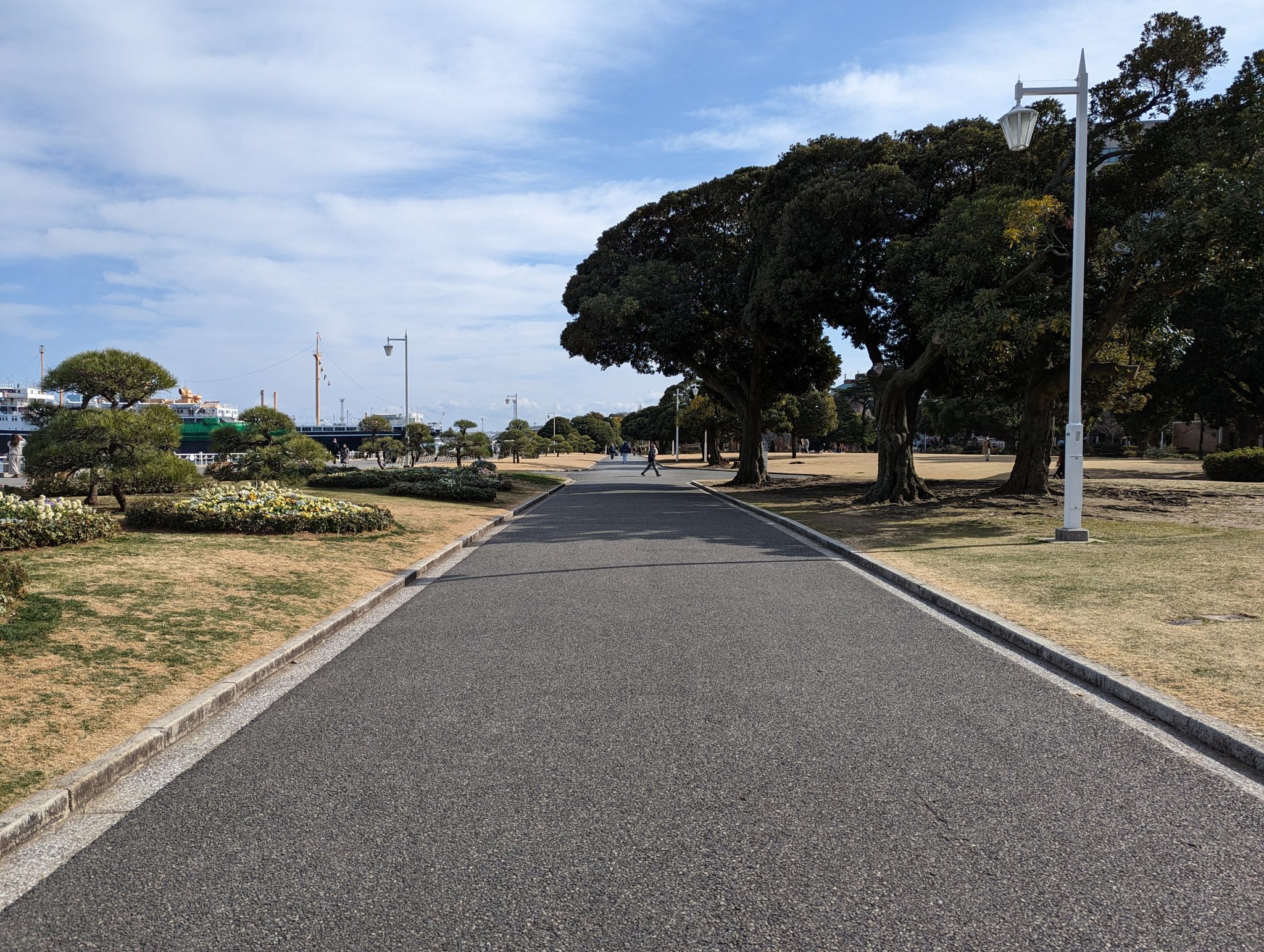 After leaving the Cup Noodles Museum, I decide to wander along the Yokohama Waterfront. While I don’t have a destination in mind, I did enjoy simply strolling along the water. Yokohama seems less “hustle and bustle” compared to Tokyo, and the waterfront is really nicely developed with lots of green space and expansive views over the water. I eventually arrive at a waterfront park named Yamashita Park. There are lots of spots for people to sit and enjoy a picnic or meal together. I really enjoyed this stroll and I think if/when I return to Japan I would probably choose to spend a few nights in this area vs the craziness that is Tokyo sometimes.