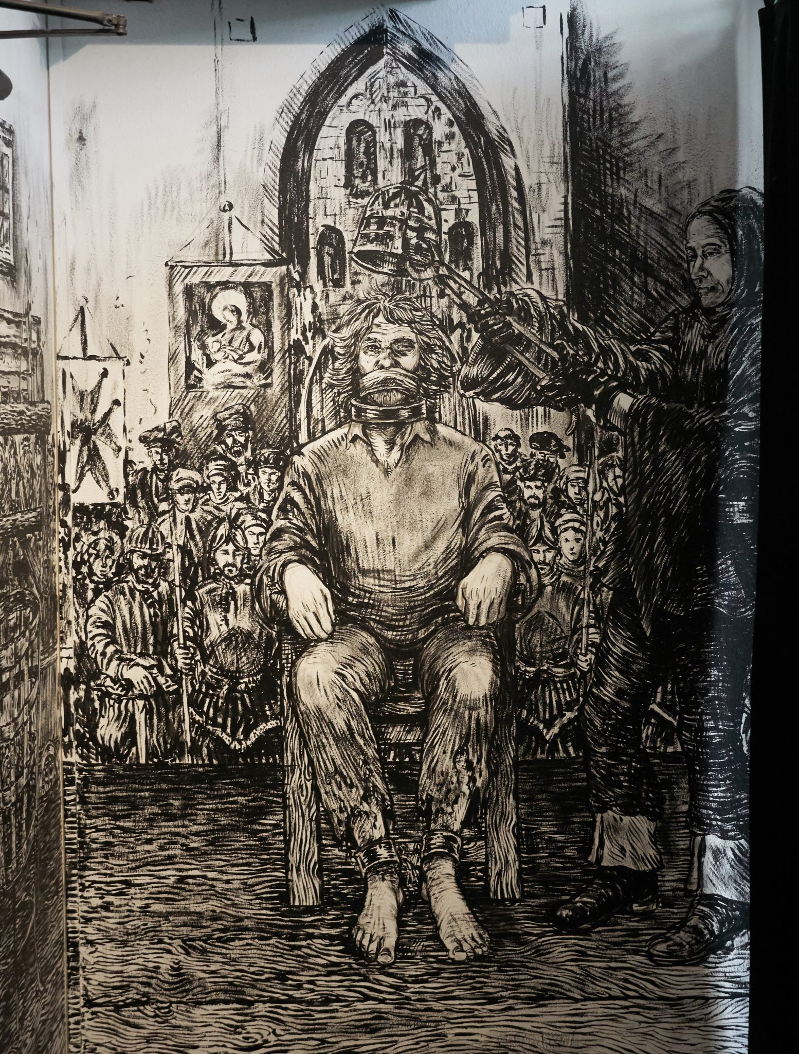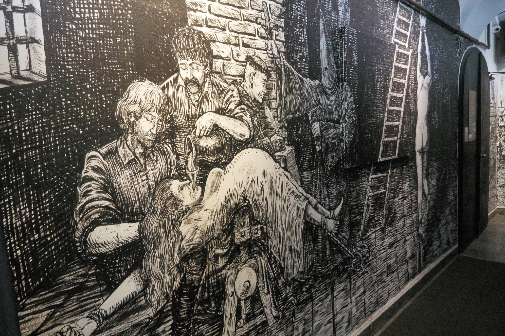The entrance is already daunting with artwork that depicts different forms of torture. The museum itself is rather small with only 2 and half rooms of exhibits. (Though, if you ask me, its enough!) In each room there are several areas displaying different types of torture tools. This could range from tools for humiliation to tools for execution. You’re able to touch several of the tools, which really gives you an appreciation for some of the brutality involved. At each station you use the IPad you’re given to scan the code. It then gives you a more in depth description of the instrument and its use. It talks about the why, how, and when some of them were used. There were more than a few occasions where you simply cringed and felt chills thinking about it.