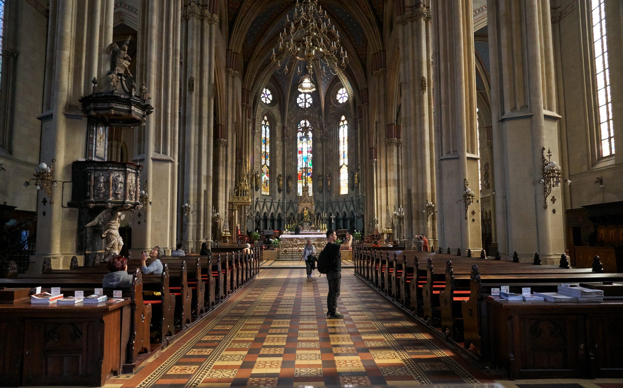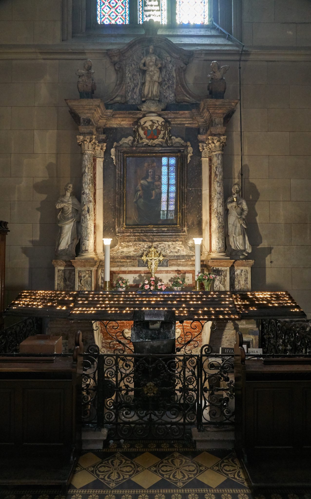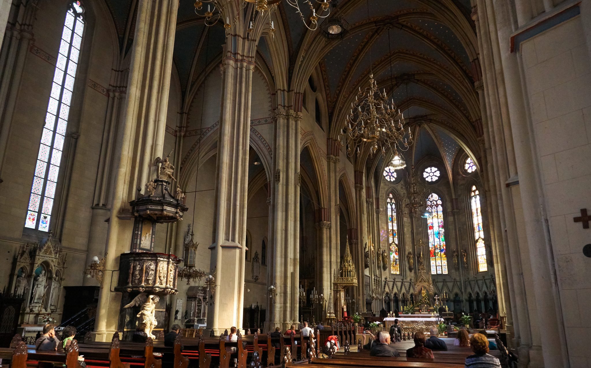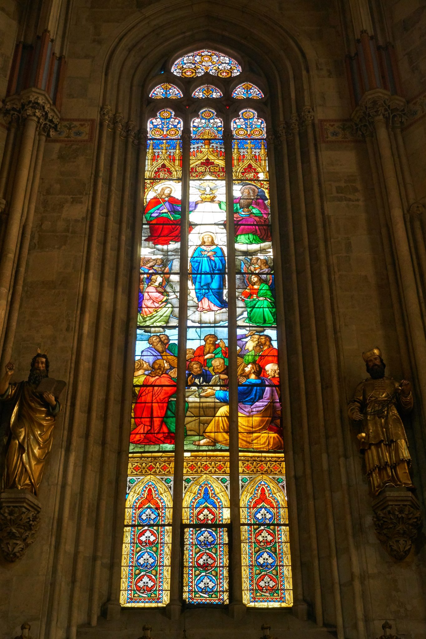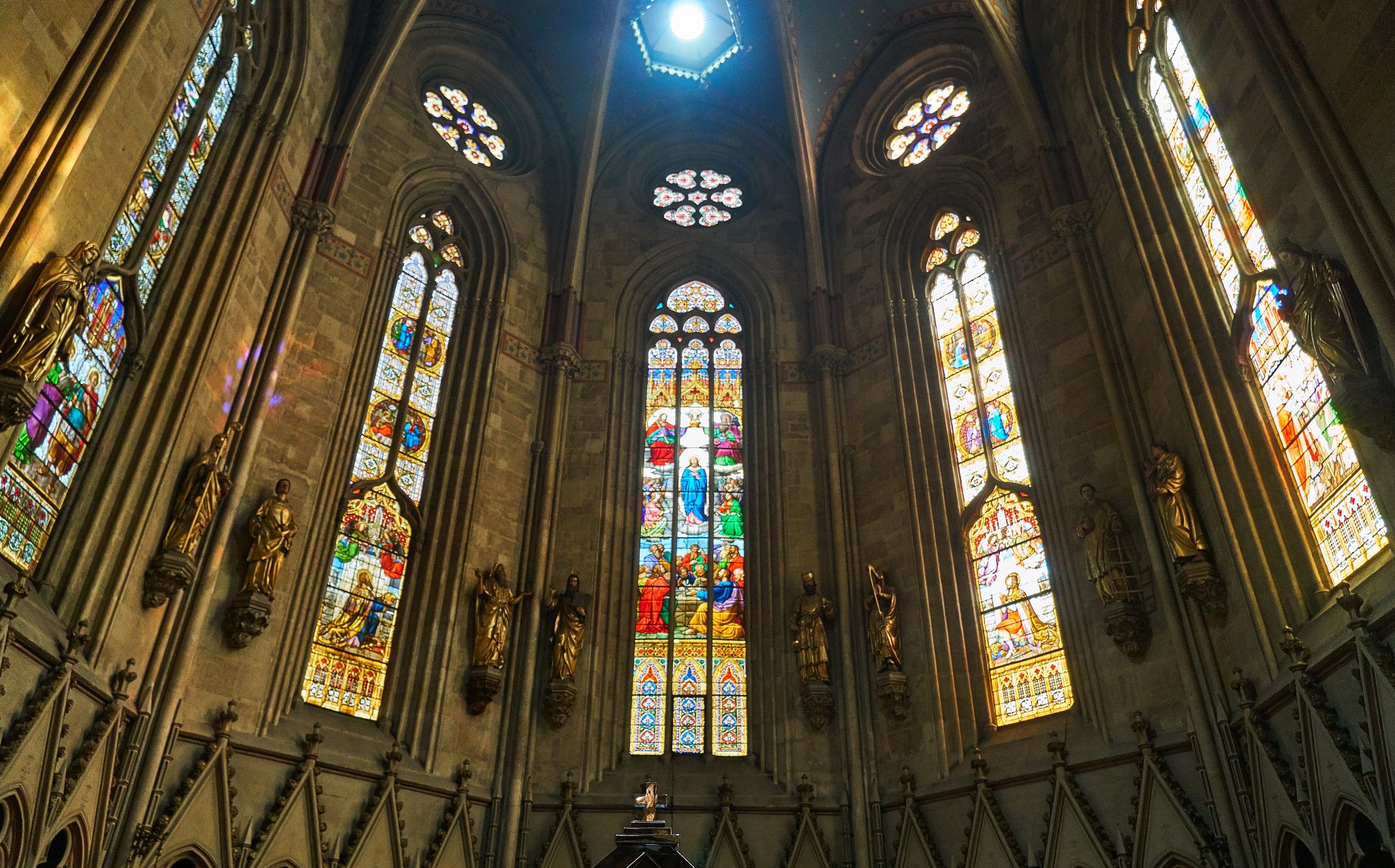 The interior of the cathedral is just as impressive as the exterior. Inside it is still a functioning church and all the elements of Roman Catholic worship are present. There is beautiful religious artwork on the walls, ornate chandeliers, statues and elements all over, beautiful stain glass and even a large organ.
